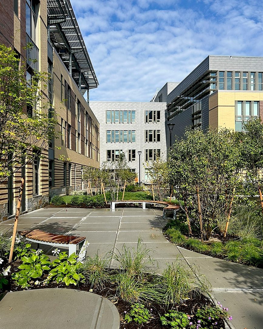 The new Tobin Montessori & Vassal Lane Upper Schools in Cambridge, MA is a $270 million four-story, 359,100 square foot educational complex. Situated on a 9.1 acre site bounded by Vassal Lane, Concord Avenue, and Alpine Street, the project presented some logistical problems as it consolidated the Tobin Montessori (316 students) and Vassal Lane Upper School (300 students), as well as programs from the Department of Human Services including preschool, after-school, and Special Start, into a resilient, unified campus.
