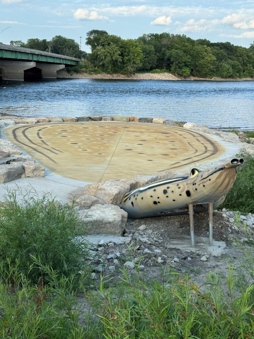 In 2025, a riverfront has been revitalized along the Cedar River shoreline in Cedar Falls, Iowa. The Turtleback Landing stands as a testament of where art, nature, community and sustainability come together due to the design and involvement of the artist, landscape architect, and galvanizer. When thinking of the type of animal that would best represent this area, the turtle was an easy decision due to the fact it’s native to the region and would bring the riverfront to life with its unique features.