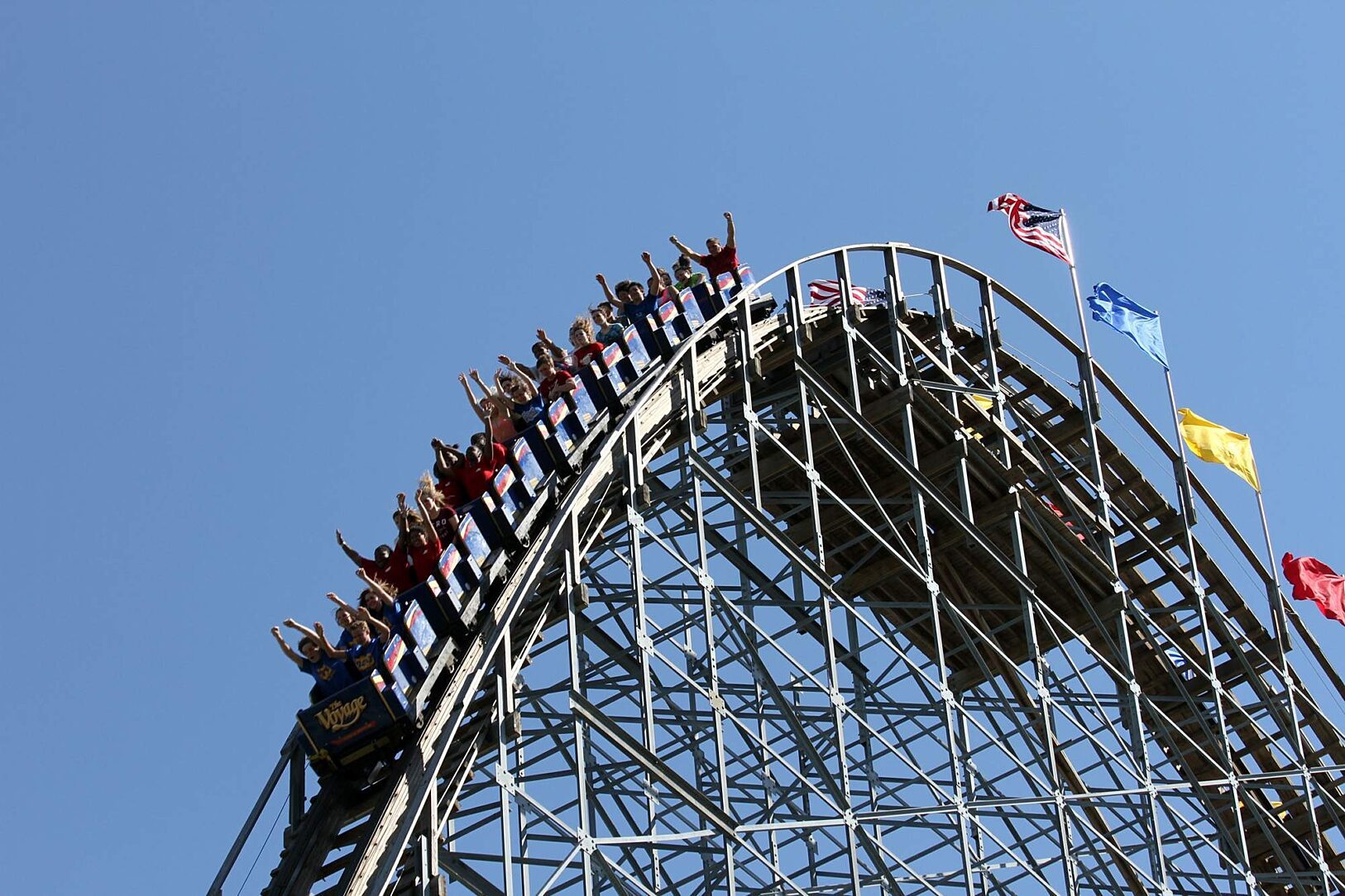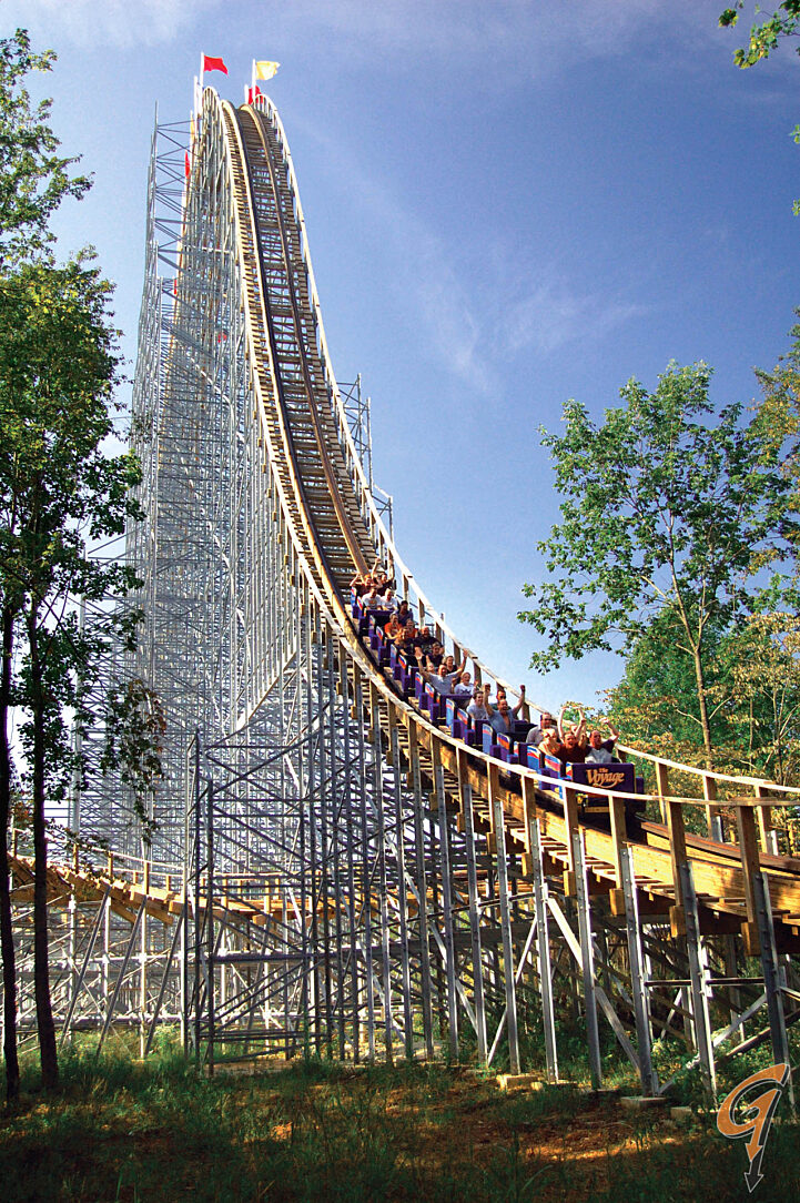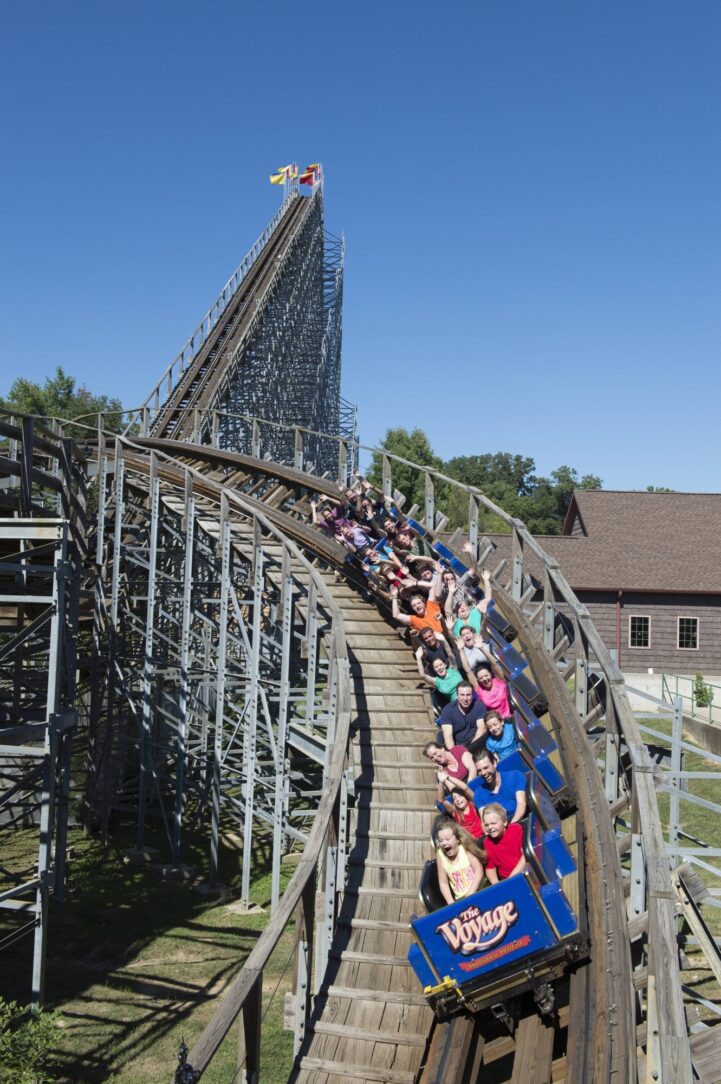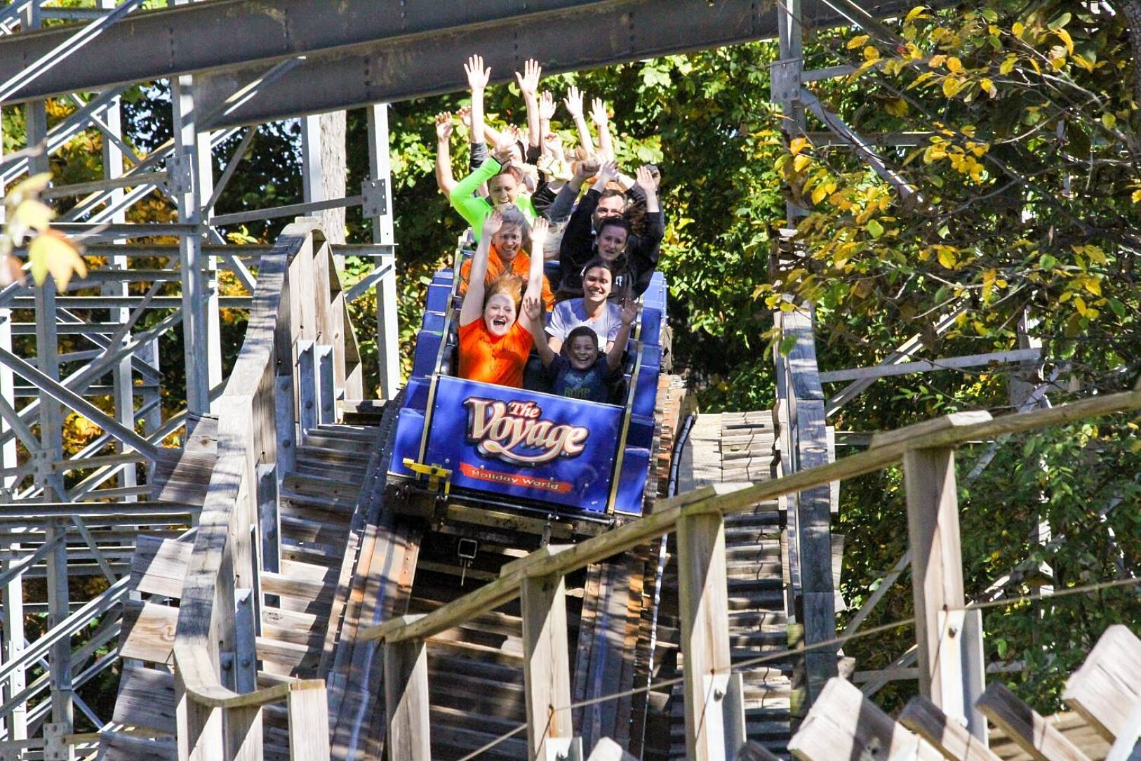 In 2013, TIME magazine named The Voyage the top wooden roller coaster in the nation! This relentless coaster is an air-time machine, with riders experiencing a feeling of weightlessness for a total of 24.3 seconds. It takes the traditional out-and-back layout to the edge of insanity, with one of the steepest drops on any wooden roller coaster in the world. The Voyage is 1.2 miles long, placing it among the planet’s top two longest wooden coasters. The Voyage also has three sections of extreme, 90-degree banking. We carved out five underground tunnels for this coaster, which is a world record. And some of those tunnels are wide enough that we roar through them twice, creating a total of eight “underground moments,” one of which includes an unforgettable “triple-down” feature. The Pilgrims never had it so good!
