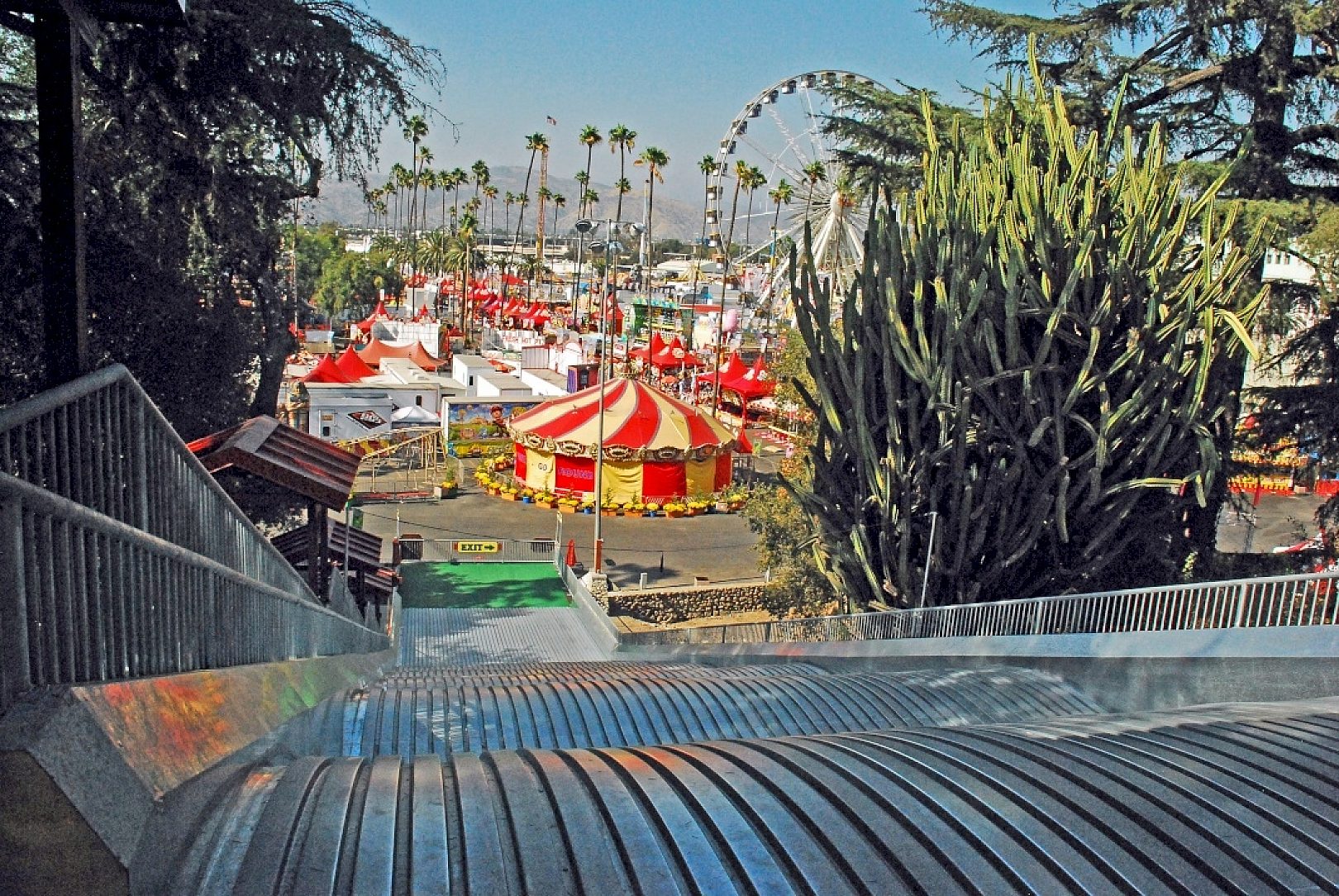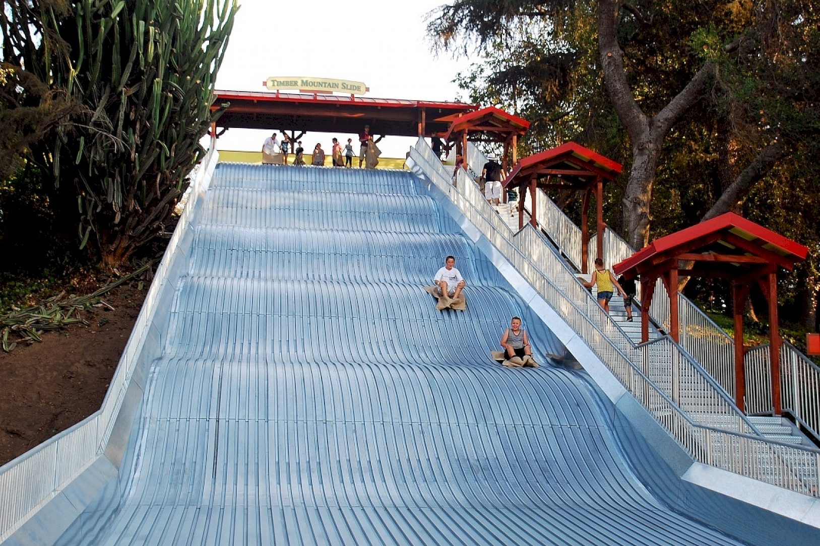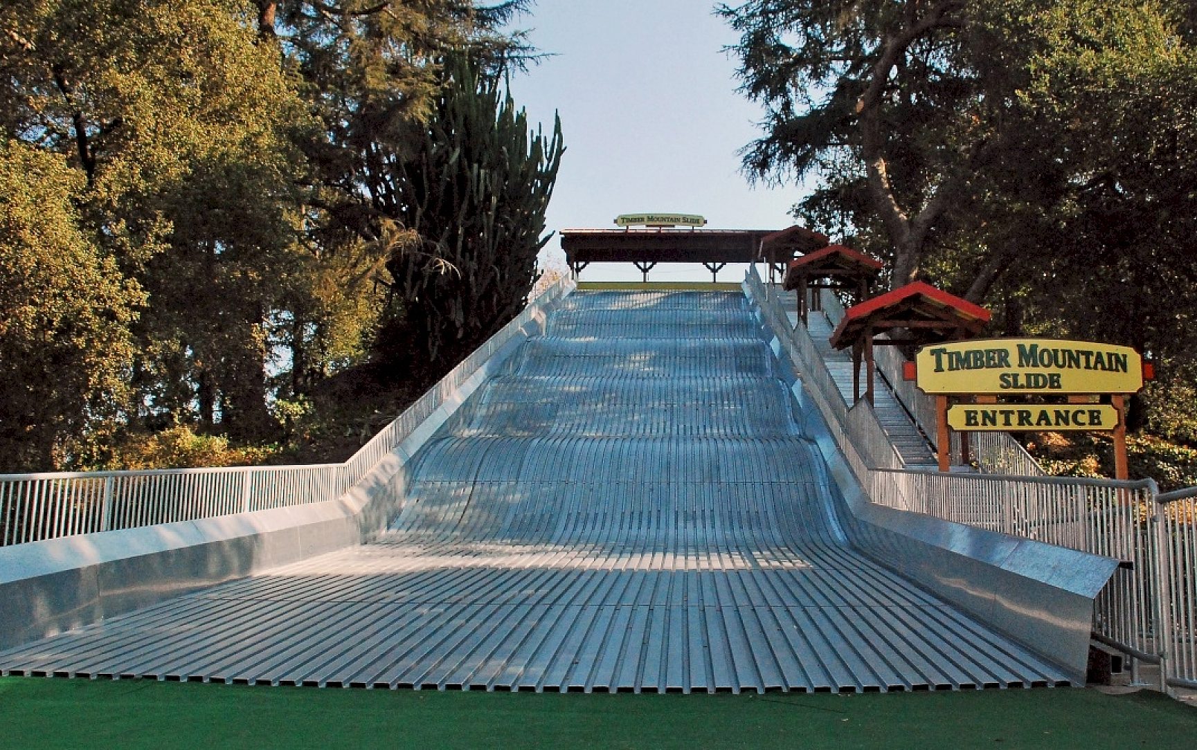 Los Angeles is a city known for famous people and famous attractions. The Timber Mountain Slide at the Los Angeles County Fairplex has definitively earned a place on that ever growing list. This miracle of modern engineering is the creation of Ray Cammack Shows, Inc., an industry leader in carnival entertainment since 1963. The slide itself is built into the side of a picnic hill (taking advantage of its natural incline) and is a permanent structure at the Fairplex.