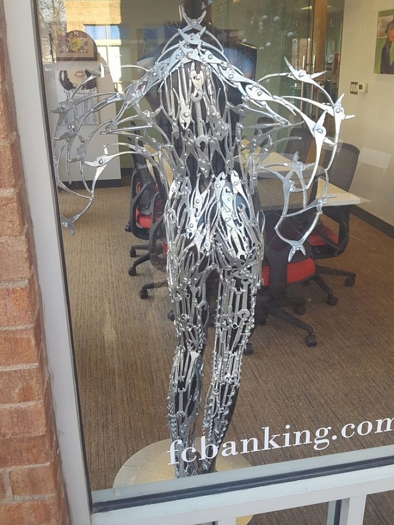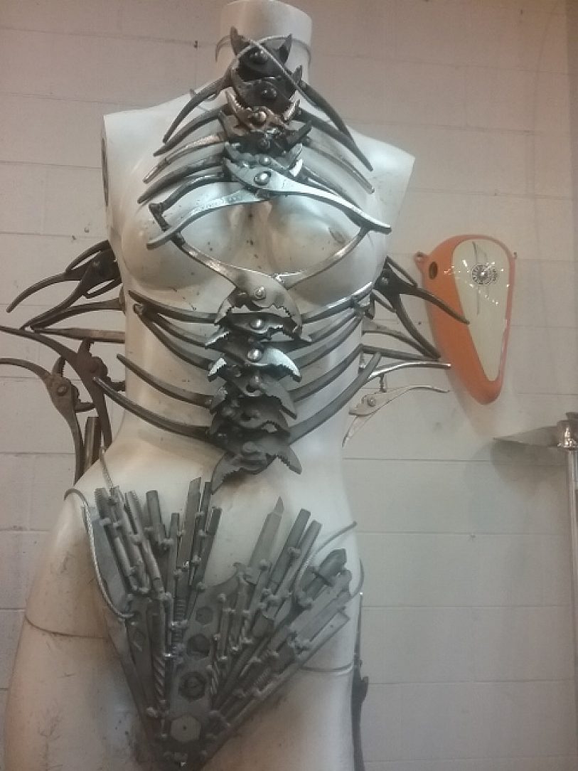 The entire outer Structure making up what appears to be a Woman's likeness with galvanized welded together tools