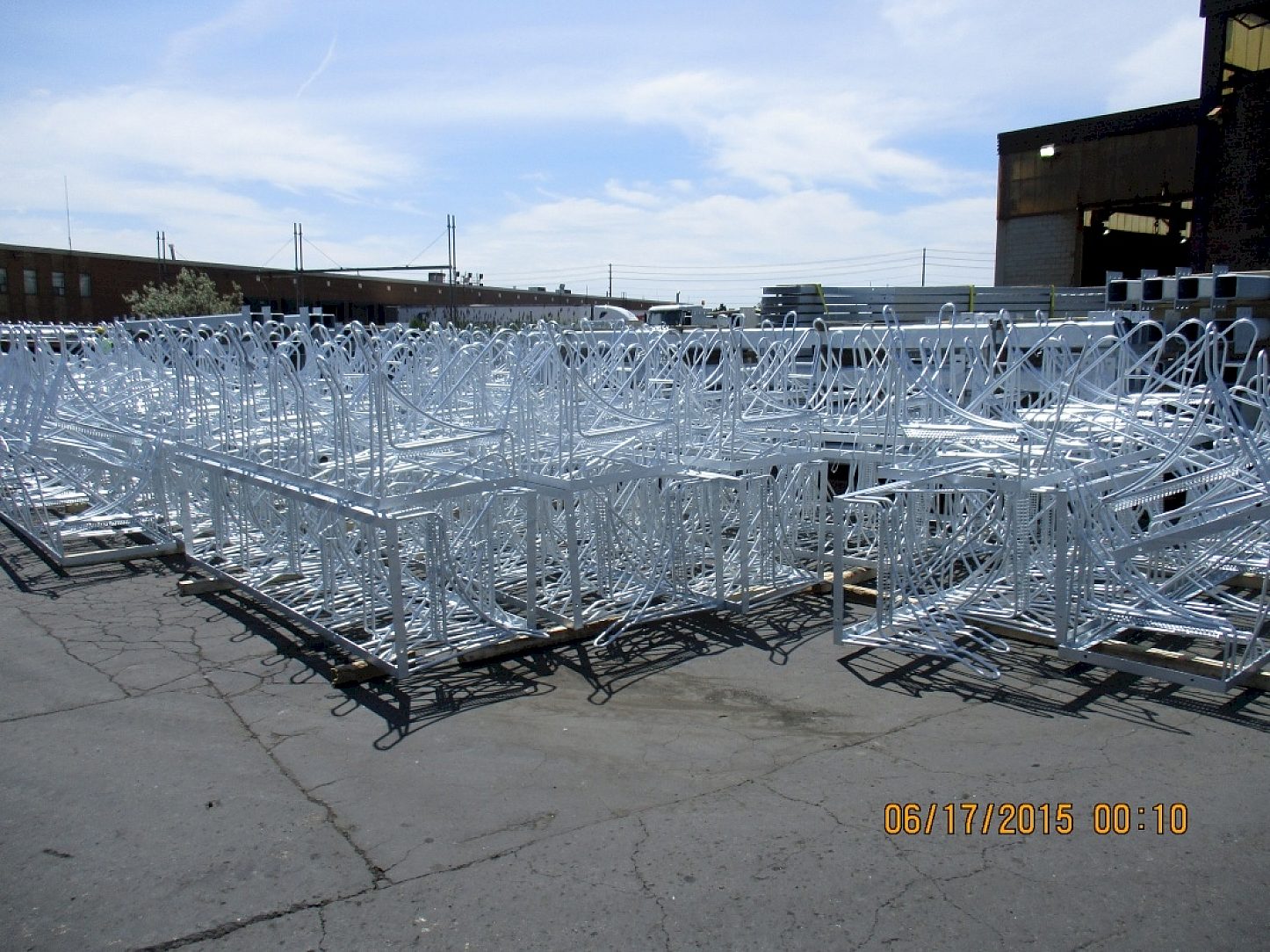 150 bike racks, each on a 10' steel frame built to accommodate at least 8 bikes.