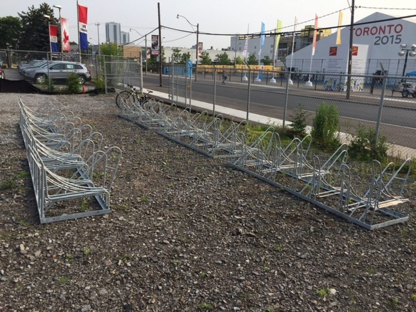 Toronto, Canada hosted the Summer Pan Am Games starting July 10th. Over 1,000,000 tickets were sold to Games venues across the Greater Toronto Area. The temporary installation of 150 bike racks were added strategically throughout the city park locations to accommodate the additional bike traffic.