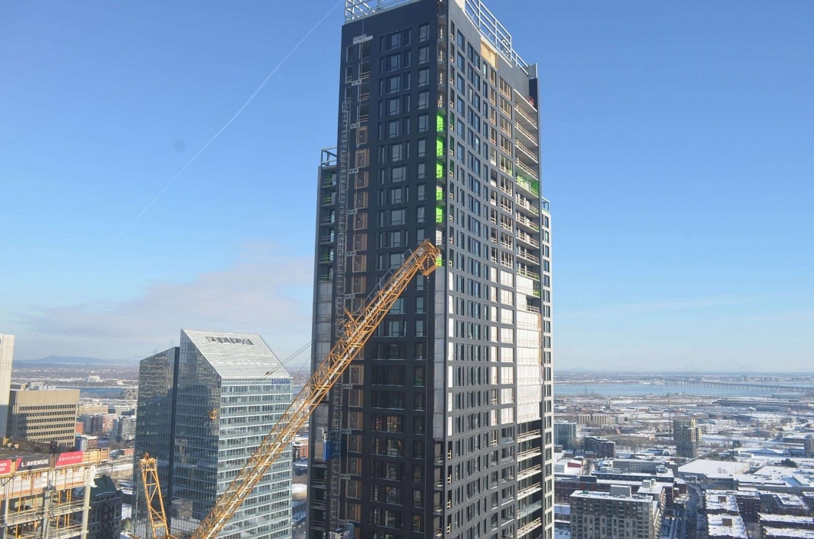 If you are a hockey fan in Montreal (and who isnt in this city) there is only one place to aspire to live; the brand new Tour des Canadiens. This condo tower is built directly adjacent to the Bell Centre, home of the famous Montreal Canadiens. The two story crown of this 52 floor, quarter billion dollar condo tower are consecrated to displaying the logo of one of most successful sports franchises in the world with 24 championships in its over 100 year history.
