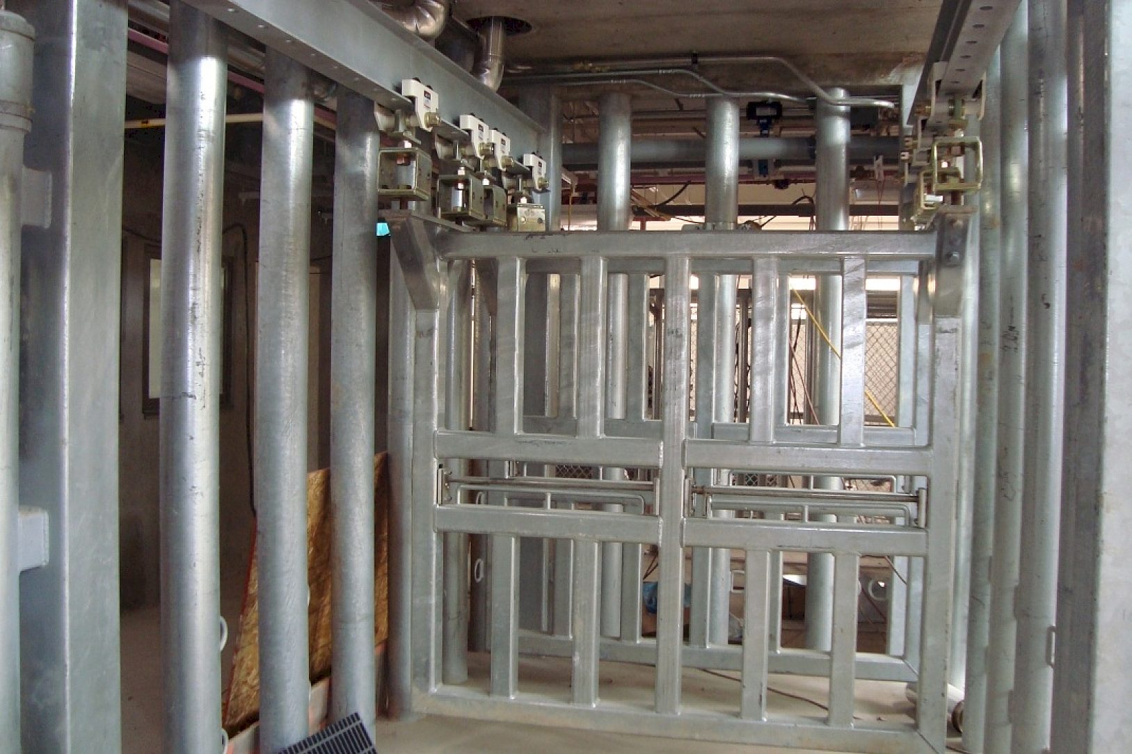 Many of the steel cages, gates, doors, guard rails and other miscellaneous steel components were designed and fabricated using hollow tubes and pipes susceptible to internal corrosion. The galvanizer worked closely with the designers and the fabricator to determine the proper locations for venting and drainage openings. As a result, the HDG process will coat all internal areas, providing complete and equal protection for all surfaces both inside and out.