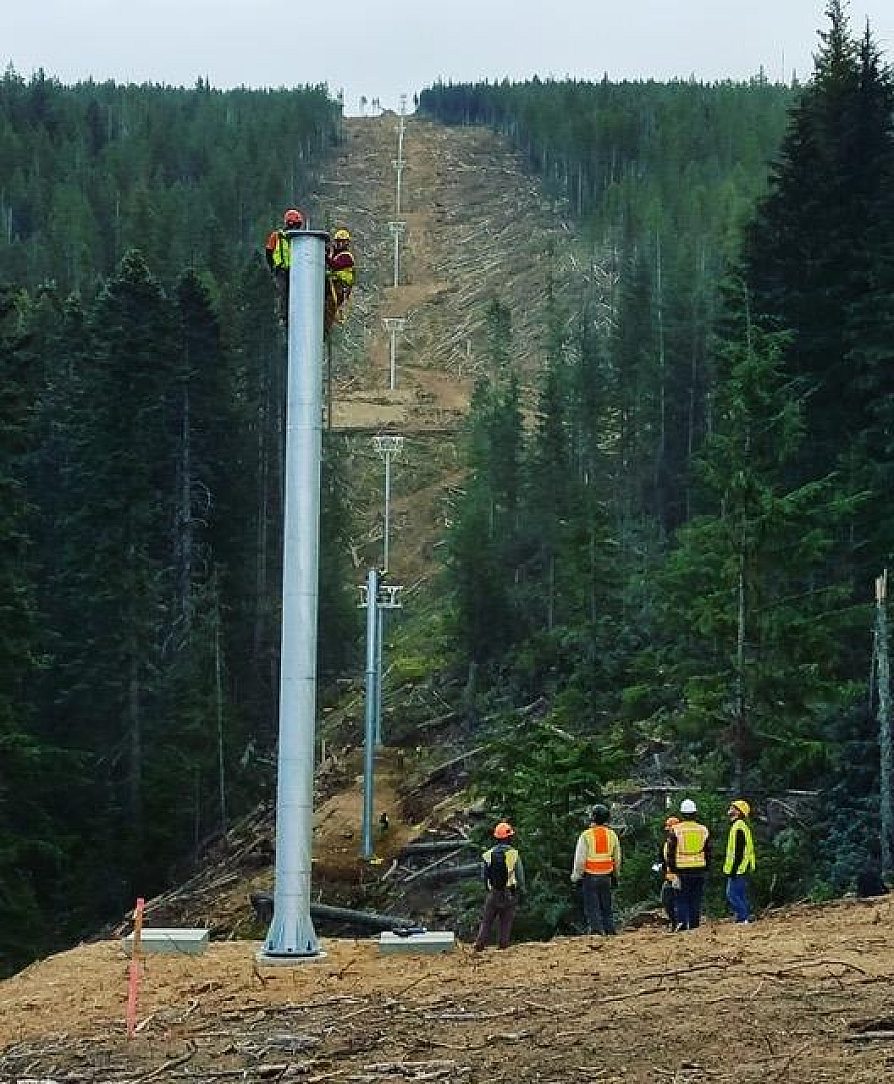 Some of the difficulties encountered with the installation of the project were typical for Skytrac, but a new experience for the Mt. Spokane crew. A helicopter flew the towers from the parking lot of Lodge 2 to each tower location. The crews experienced 100 mph prop wash while trying to position and install each of the 17 towers consisting of 10,000 lbs. of hot-dip galvanized steel. With some of the towers being over 50’ tall, hot-dip galvanizing was chosen for superior corrosion resistance, longevity, and decades of maintenance-free service compared to other coating systems.