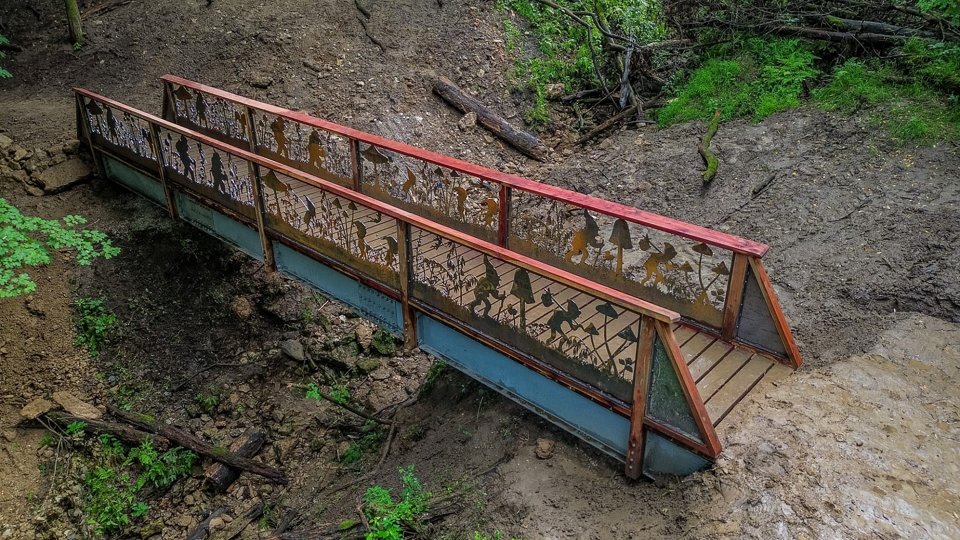 In early 2024, Great River Bluff State Park in Winona, Minnesota, developed and began construction on the “Troll Stroll,” a hiking trail inspired by an urban legend about giant trolls inhabiting the park's mysterious areas. During planning, they encountered a challenge: a creek bed that required crossing. While the creek was often dormant, it became too tumultuous for everyday hikers to cross safely during heavy flow. A bridge was needed—but not just any bridge.