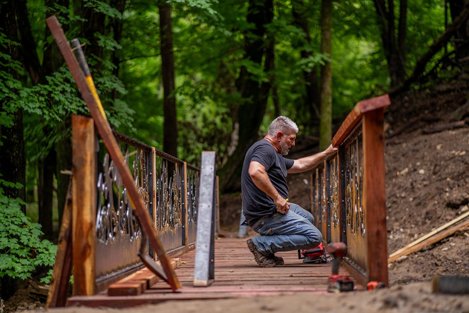 The collaboration resulted in a 40-foot-long pedestrian bridge that serves as the finishing touch to the trail system. It playfully embraces the wild-hearted fable, drawing adventurous hikers and families to Winona and showcasing the legend of the “Troll Stroll.” “I’m really happy with my first bridge design to be built in the wild! We wanted to keep it creative for their ‘Troll Stroll’ trail, so I put together a fairytale illustrative design for the railing panels,” Runnels said. The bridge now stands as a testament to the power of collaboration, creativity, and a little bit of troll magic.