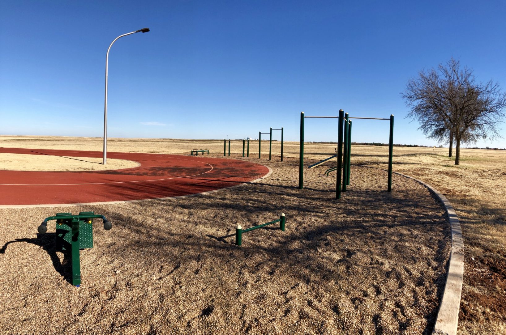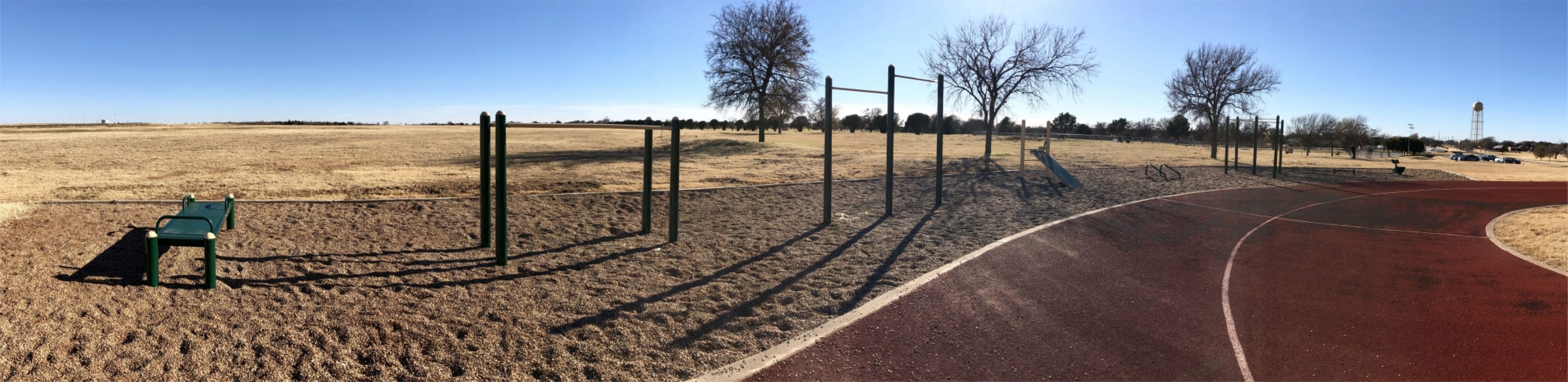 Each piece of equipment is anchored in 7-foot deep concrete footers with a thick bed of colorful pea gravel covering the foundational base. The overall design and engineering of the fitness equipment is proprietary to Greenfield’s Outdoor Fitness, Anaheim, California and it is widely regarded as the gold standard in their industry, having supplied fitness equipment to all branches of the U.S. military. The lead designer and engineer for the company, Aviv Avishay, personally oversees the creation of every piece of exercise equipment from inception to completion.