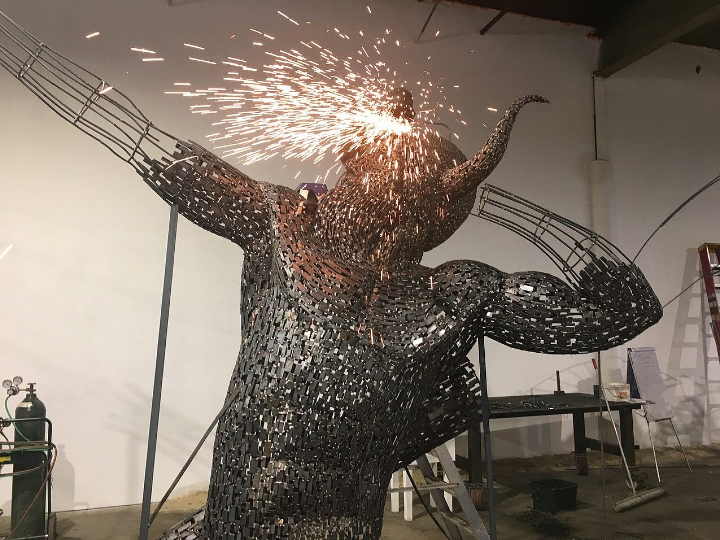 Andy Scott selected a trusted galvanizer, dedicated to producing quality results that he used successfully for past projects. Familiar with processing limitations, the sculpture arrived at the galvanizing facility in two sections, specifically fabricated to meet the capacity of the hot-dip galvanizing kettle. The intricate components required delicate handling and close attention to detail. Out of the kettle, Ullr glistened with the newly formed, smooth zinc coating. He was then fully assembled at the installation site.