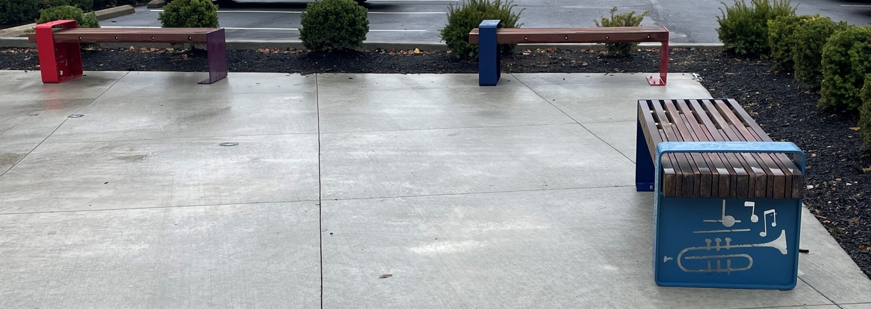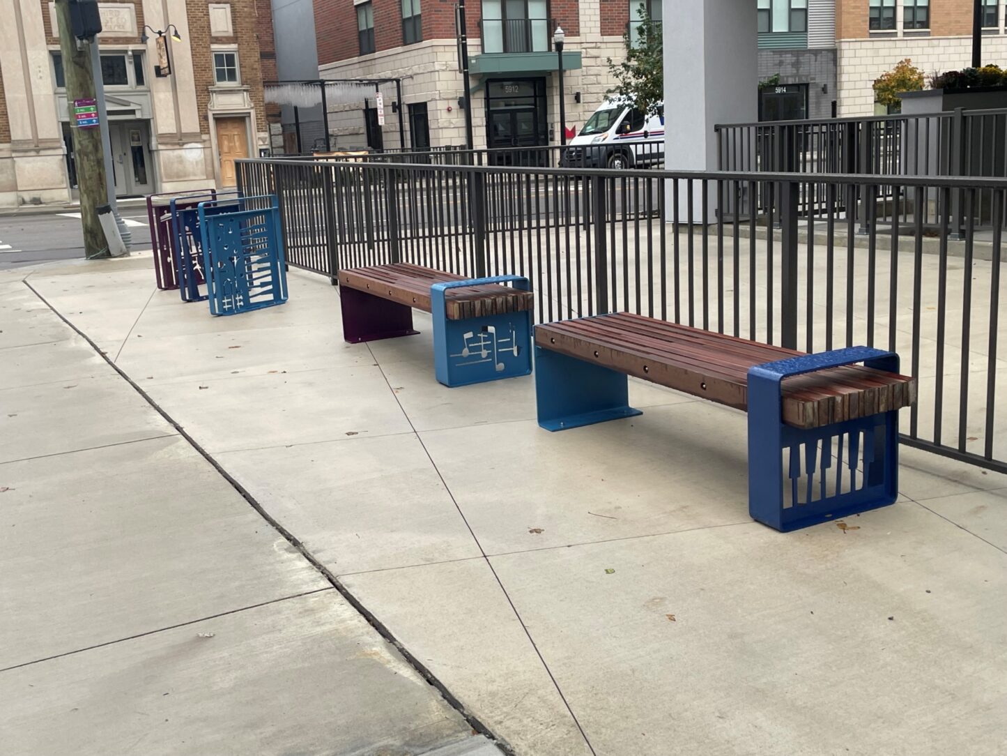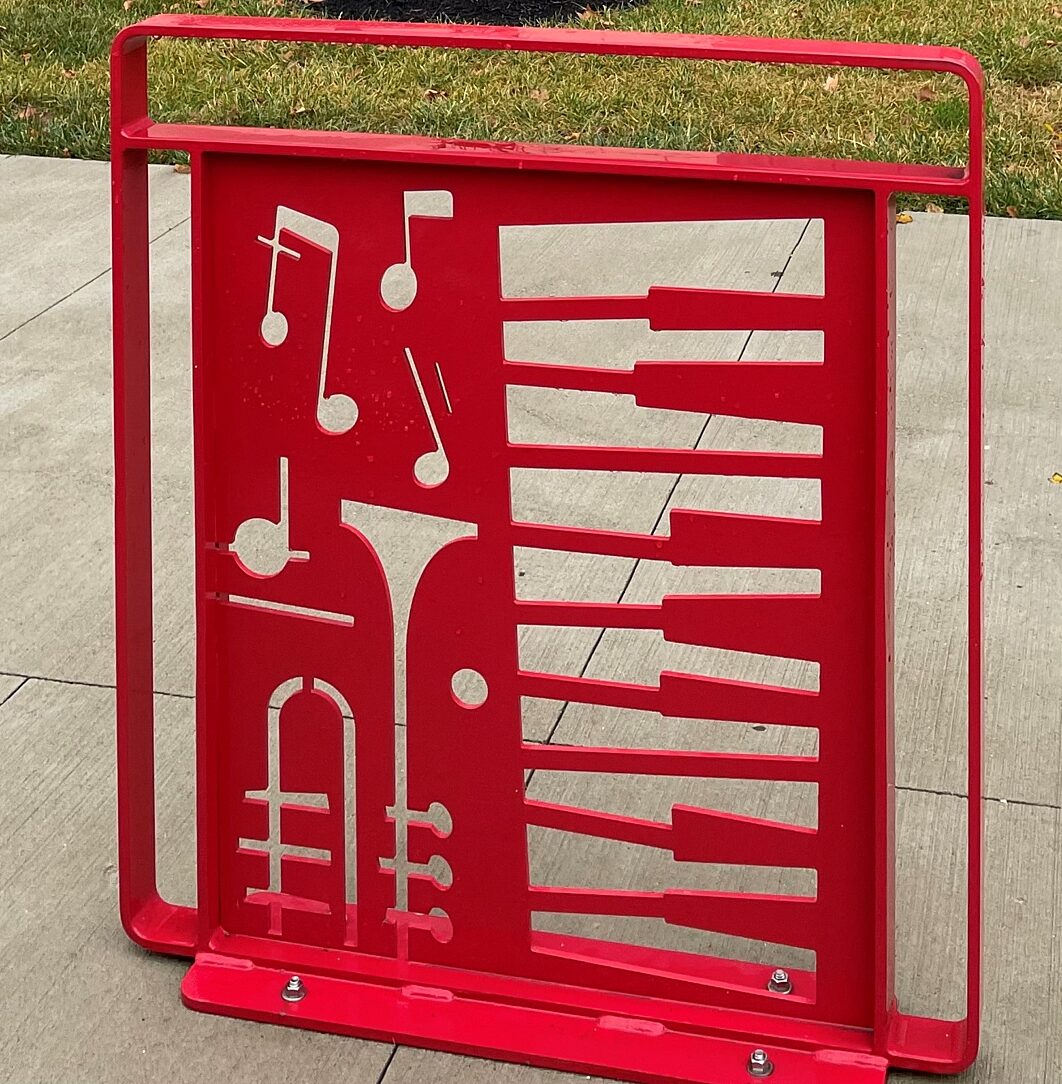 The goal is to redevelop the area into a walkable, pedestrian-friendly neighborhood. Hot-dip galvanizing was specified on this project because it would protect the benches and bike racks from the sometimes harsh weather, salt thrown from snow plows and the wear and tear of people enjoying them. The designers wanted to bring bright colors to this area in hopes of making families want to stop, park their bikes and enjoy the area once again. The duplex system provided both. The musical notes on the benches and bike racks were chosen by Artworks, Sediment Design and Ackermann Group to pay homage to Madisonville's love and history of music.