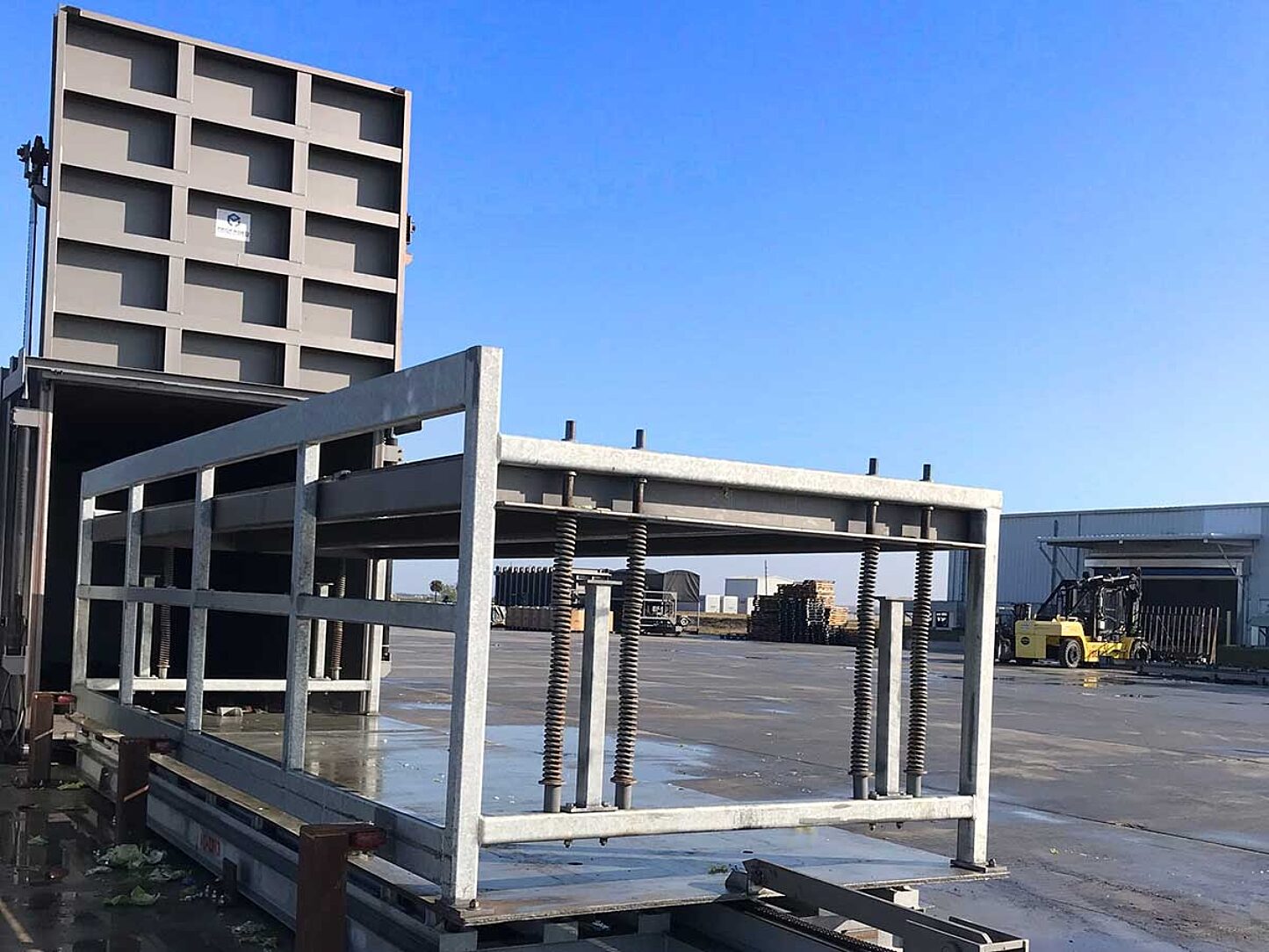 The steel fabricator and Vacuum Cooler manufacturer worked closely together to design the perfect rack and conveyor system for the cooling units. They both agreed galvanized steel was the preferred option as they wanted coating durability, corrosion performance and life cycle cost based on the wet, damp conditions regarding moisture. They consulted with a nearby galvanizer to assist in the finalization of the design in terms of size and weight. The galvanizing management team met with them to finalize venting & draining details especially regarding the way the racking system was to be hung and eventually hot-dip galvanized in the kettle.