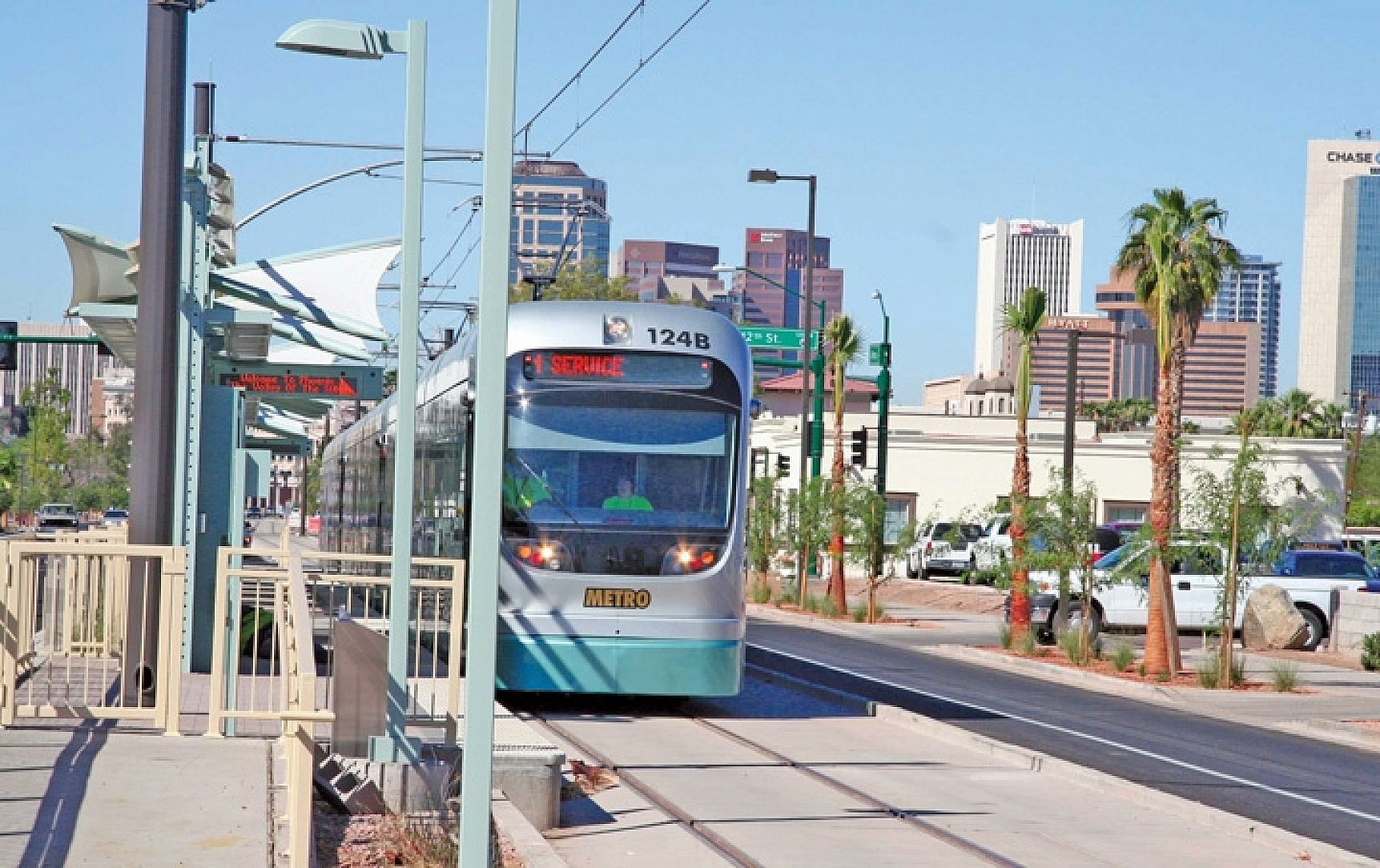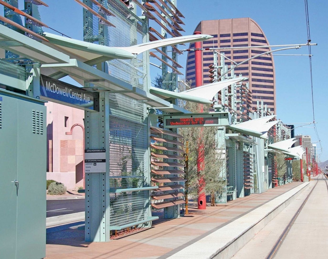 Speeding along under the hot Arizona sun, the Valley Metro Light Rail System is one of the largest infrastructure projects ever undertaken in the region. A valuable investment in the Valley's future, the light rail was needed to meet the growing transportation needs of the greater Phoenix area; in fact, a fully loaded light rail car can take as many as 180 cars off the road, while a three-car train could take the equivalent of 540 cars off the road.