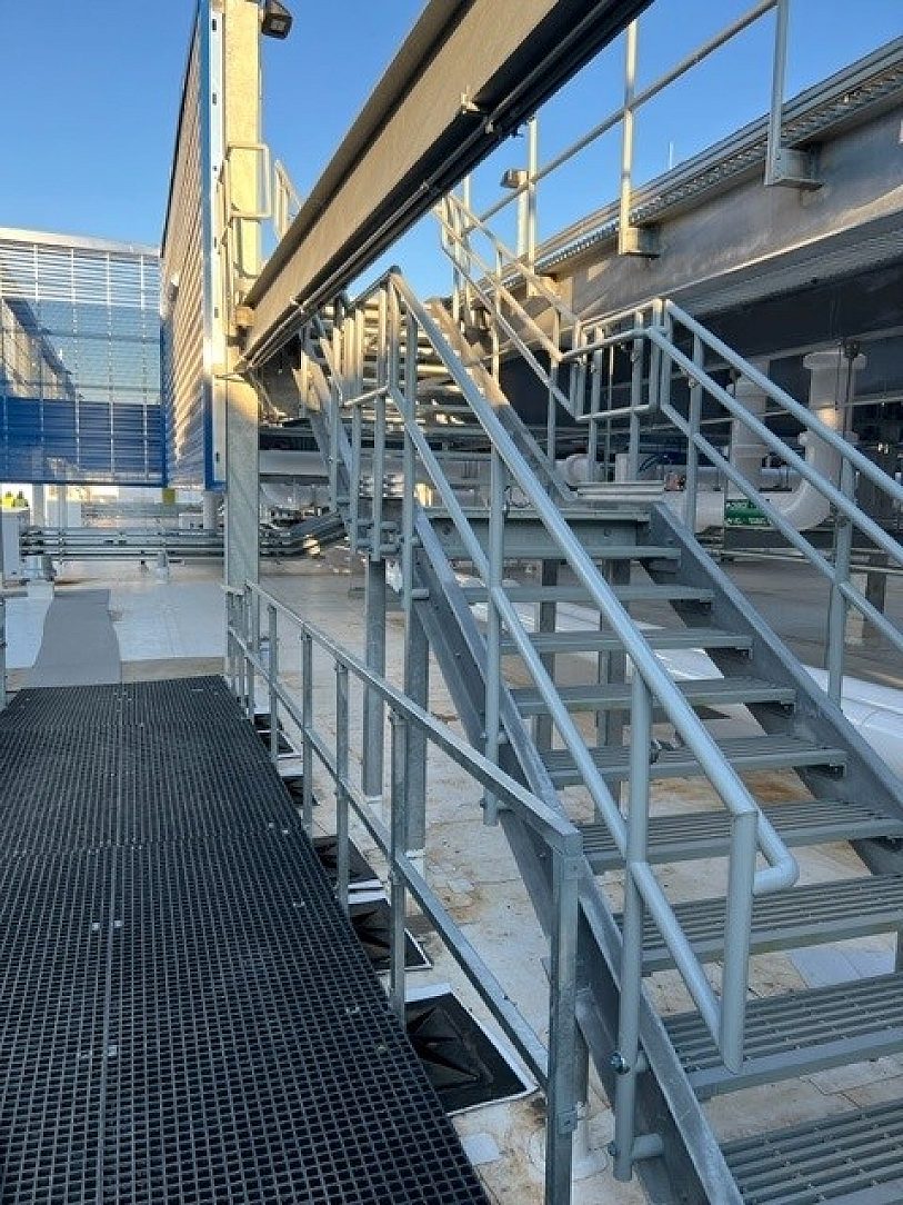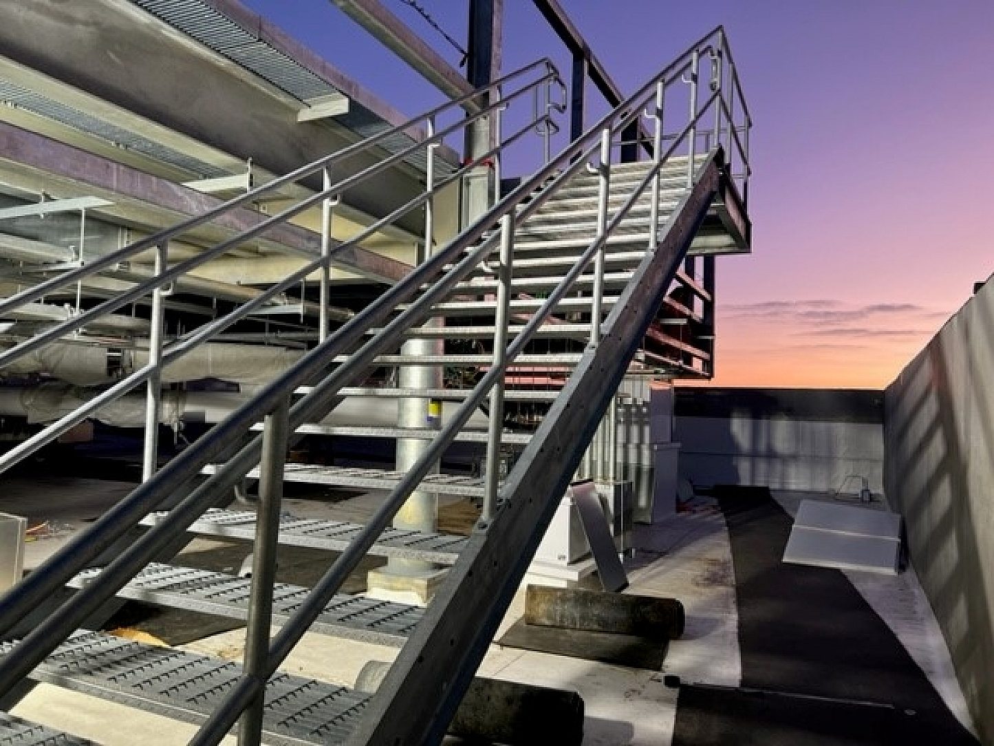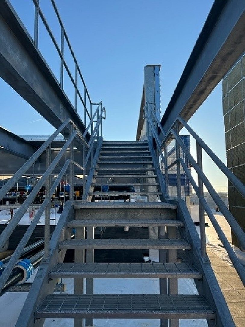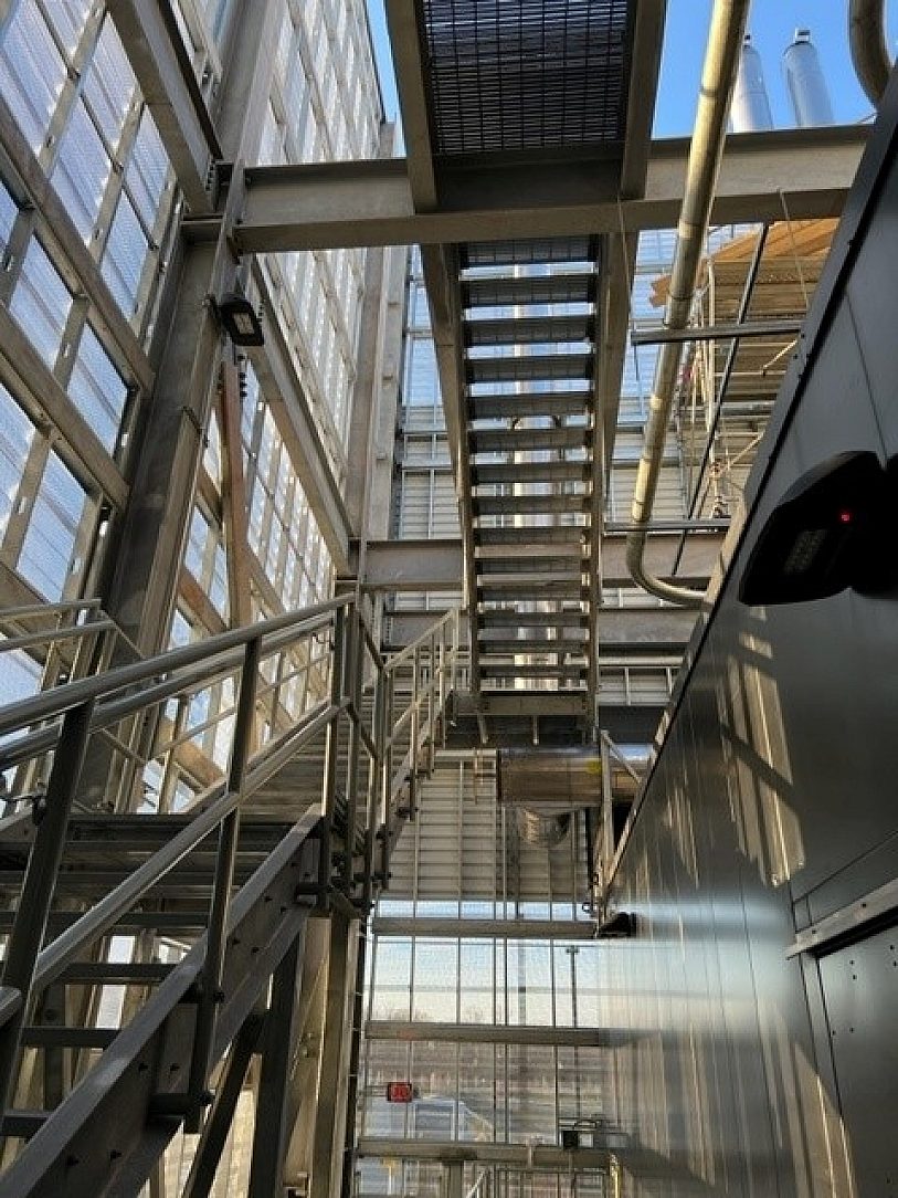 Structural support steel, stair and handrail for several floors of data center