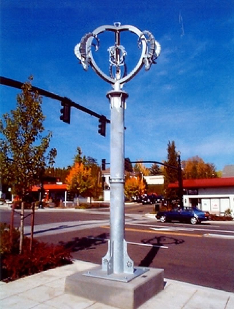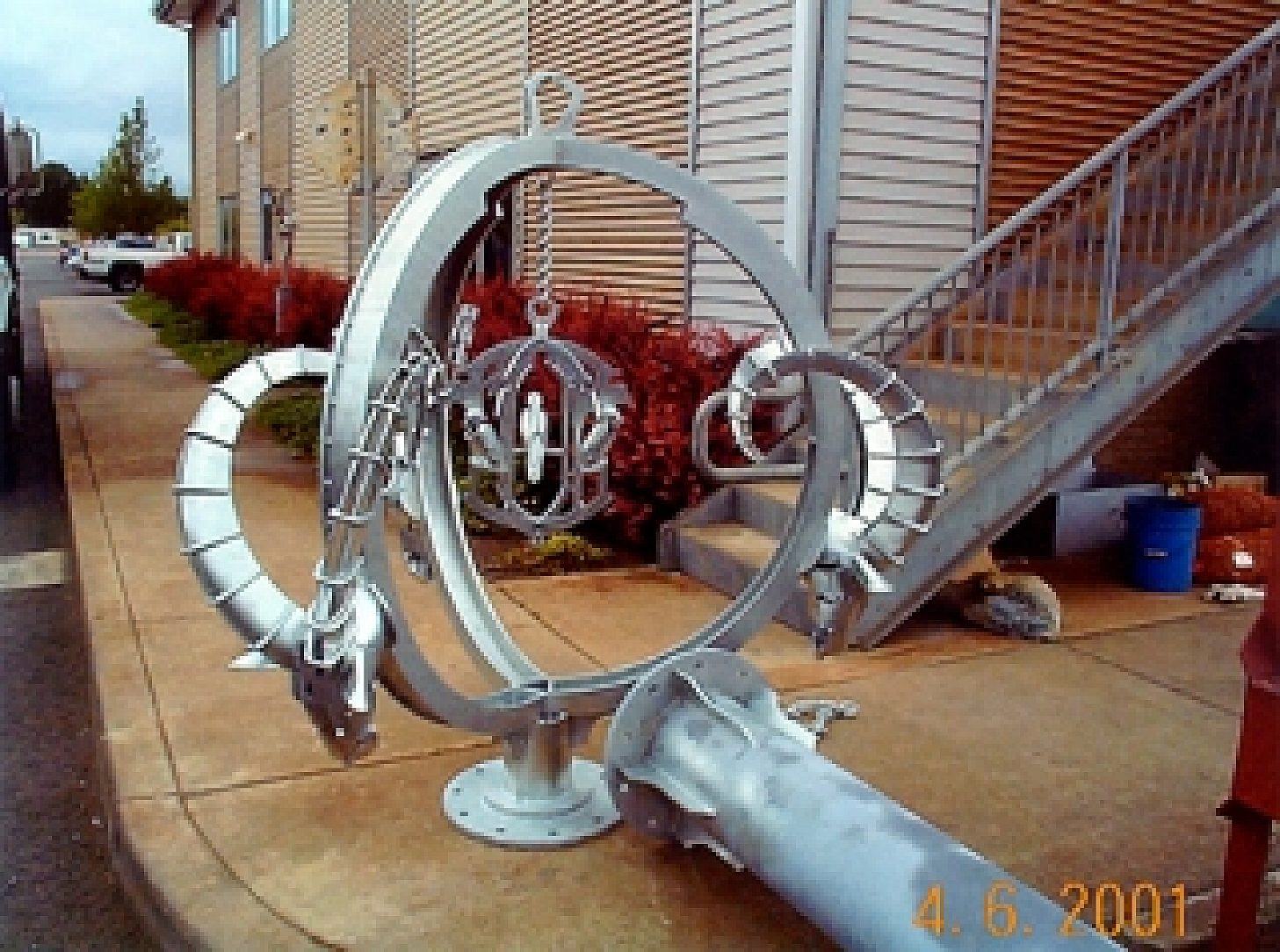 All parts of this sculpture, as well as the fasteners, were hot-dip galvanized. The design is intricate and required extra attention to venting and draining holes. The correct dip temperature and minimizing of contaminants was also critical, based on the unique design of this sculpture.