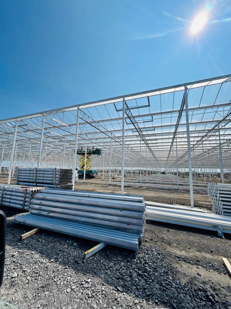 Steel is a great choice for all involved in this project. The unbeatable cost-weight-strength nature of steel results in minimal cross sections maximizing light penetration and thereby growth speed and yield. Precision manufacturing insures easy and quick “Meccano set” like erection. The only weakness of steel in this type of application is corrosion.