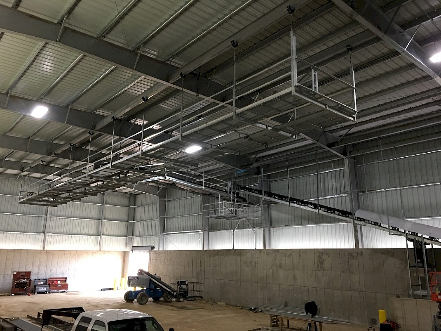 The quick application for hot dip galvanizing was also seen on this project. Foundations where started in November of 2016 and the facility will be operational as of November 3rd 2017. In that time, fabrication of the steel beams, guide rails and conveyers needed to take place. Along with fabrication, hot dip galvanizing application and erection of the facility needed to be done quickly enough to then allow for the state of the art computer monitoring system, amenities, and chickens to be put in. When you account for transportation of all of the materials to the job site, a 1 year start to finish timeframe of a 48,000 sf building is no small feat. Proper communication from the fabricator, galvanizer, trucking, and placement crew was crucial to this timeframe being met.