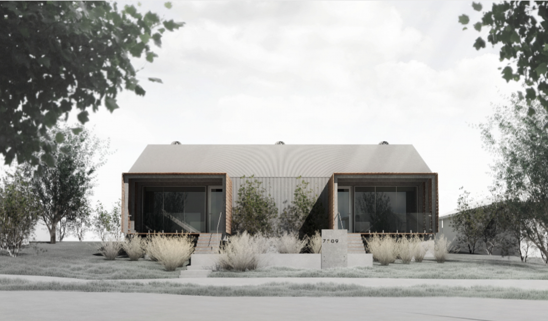 The front porches became a spotlight of the Waldo Duplex, from an architectural viewpoint as well as for the unity they inspire. Minimal maintenance, durability and long-life span were considerations when specifying materials and protective coatings. The steel components of the porch were therefore galvanized to ensure ultimate protection.