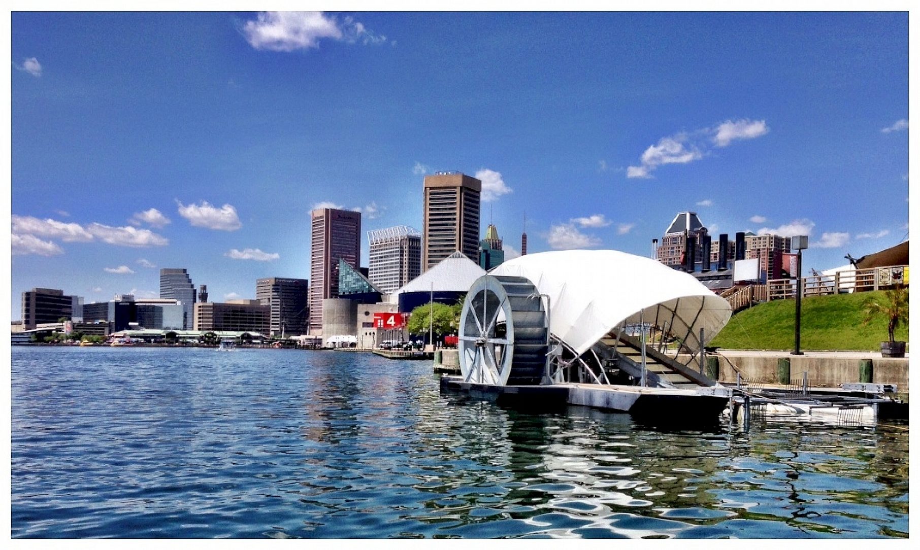 The water wheel will be a highly visible piece of Baltimore's Downtown Inner Harbor. Its task is to clean up the trash that gets dumped into the water on a daily basis. The wheel, capable of removing 50,000 pounds of trash per day, will bring the cities goal of making the harbor clean enough for recreational use by 2020.