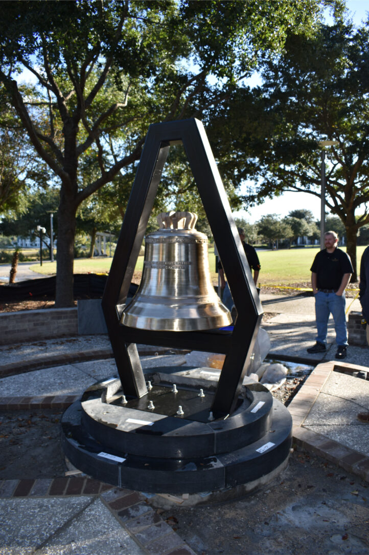 The Mount Pleasant Recreation Department selected internationally recognized Christoph Paccard Bell Foundry to bring this project to life. The bronze bell itself was designed with a removable hammer, reserving the ringing rights for special occasions. The support structure was made from duplex coated steel that sits upon a black granite base. Company President Stan Christoph shared that the steel structure was originally specified for painting; however, he was concerned about the corrosive environment near the salty water. Based on his years of experience, he knew that just one nick in the painted coating would result in rust. After consulting with the project team, he sent the structure out for galvanizing prior to painting.