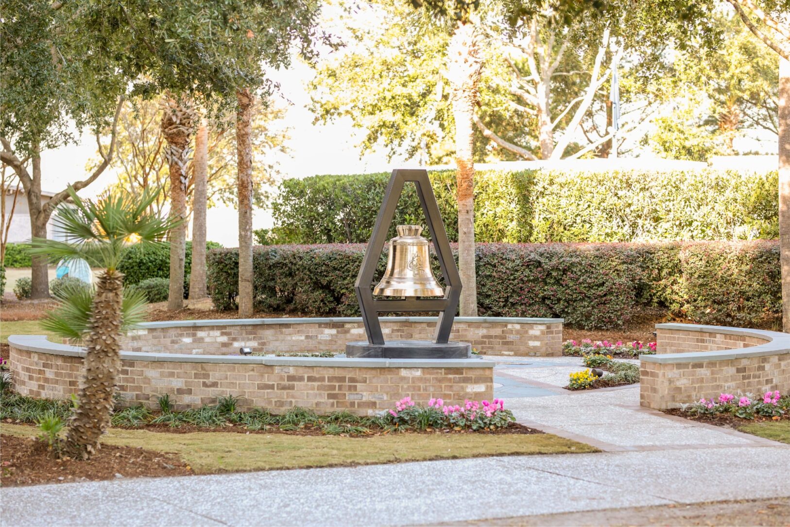 The First Responders Monument was actualized in the form of a beautiful bronze bell encased by a steel structure that resembles the Arthur Ravenel Jr. Bridge’s tower supports – an iconic symbol in Mount Pleasant. It resides in a circular space containing three entry points to represent each essential department- fire, police and public service. The 1,000-pound bell at the center of the monument represents signals of distress that alert citizens when emergencies arise. The peaceful location offers ample room for visitors to view, honor and reflect on the sacrifices first responders make each day.