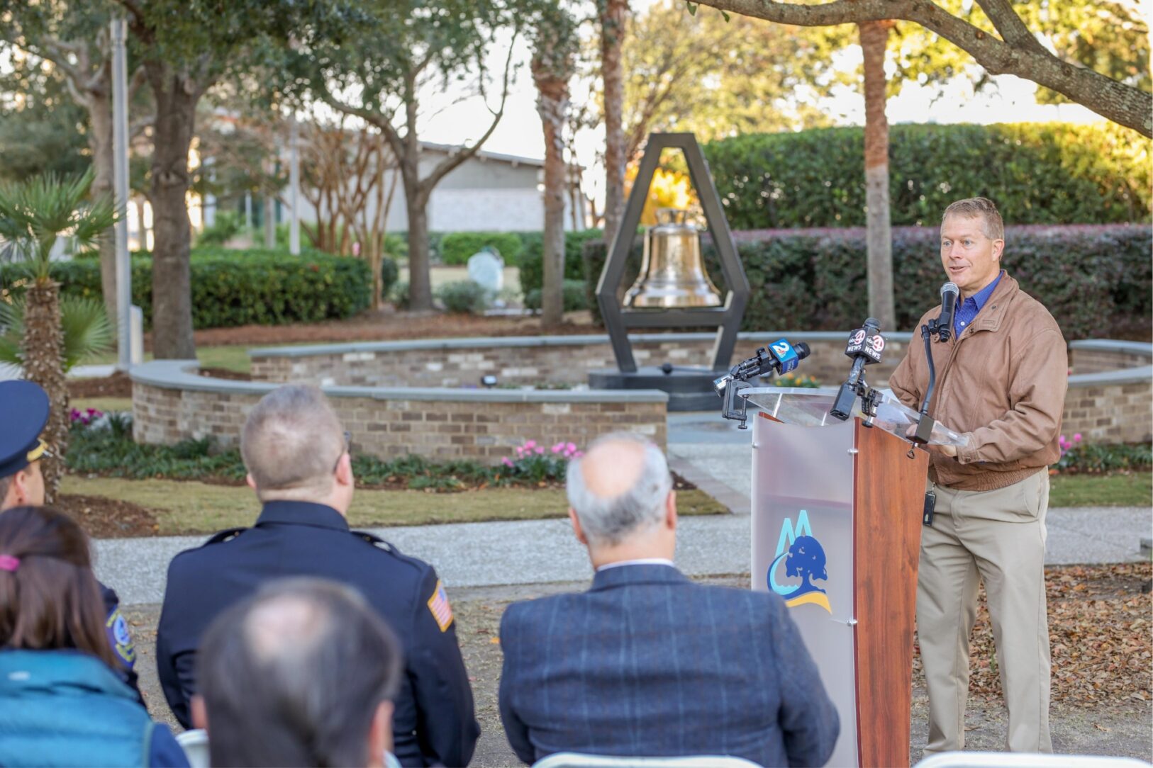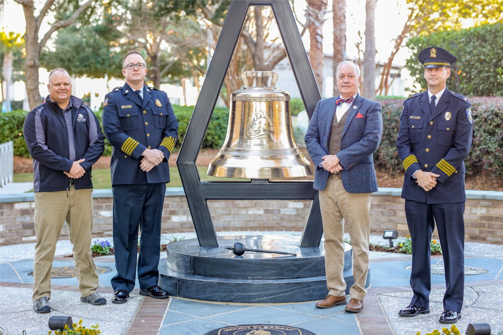 The community and first responders of Mount Pleasant came together on December 1st for the monument’s dedication ceremony. The Chief of Police, Fire Chief, Public Services Director, and each council member ceremoniously rang the bell that is inscribe with the statement, “there is no greater calling than to serve others.” Just like our first responders, this monument is prepared to weather any storm in honor of these heroes throughout the nation.