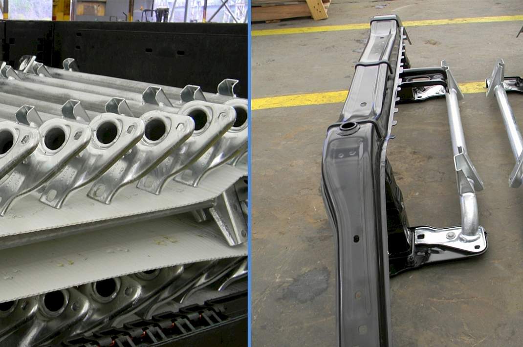The project was galvanized for two reasons: coating durability and initial cost. With the product being in an over the road environment the coating durability is key. Rocks and other debris in constant contact with the hitches. Also, becuase these hitches are constantly on the road, taking them out of service to repaint is not an option.