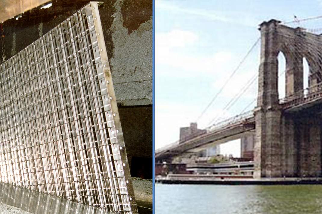 Steel beams were the only choice given the need to strengthen the bridge and be able to retrofit beams between the existing bottom chords of the wrought iron structure. Heritage considerations dictated no altering of the bridges visual aesthetics. As the old steelwork was coated with red lead paint, the structure required encapsulation to ensure no paint flakes were discharged into the river below.