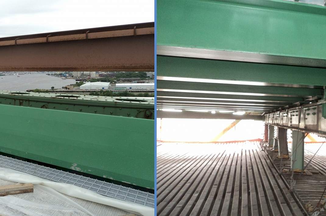The project used 4.5m long sections of 310UC97 for over 300 new cross girders and 11-metre lengths of 200UC60 for 36 new steel stringers.