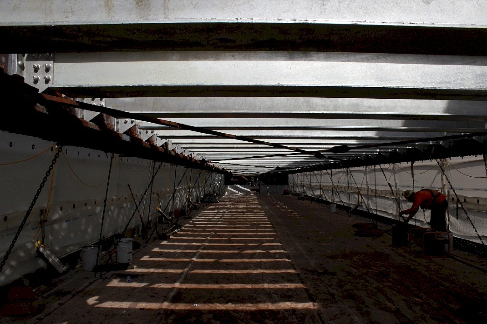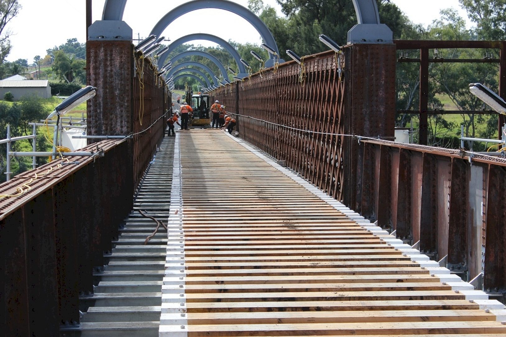 Given the critical nature of the bridge link, work had to be completed in the shortest possible timeframe. As planned, the bridge was out of action for just 16 days to carry out replacement of the entire steel deck. The successful completion followed 18 months of planning and seven weeks of pre-work on the site. During the 16-day outage, two crews of 20 people worked round-the-clock in a coordinated replacement of the steel cross-members, stringers and timber transoms.