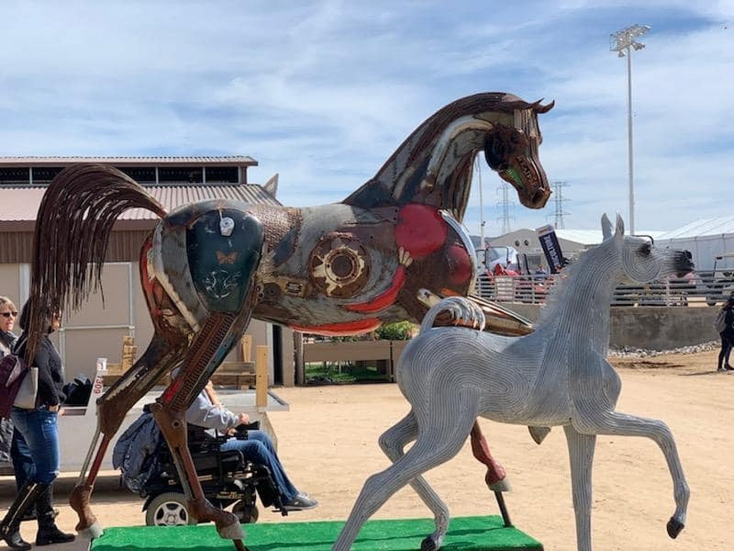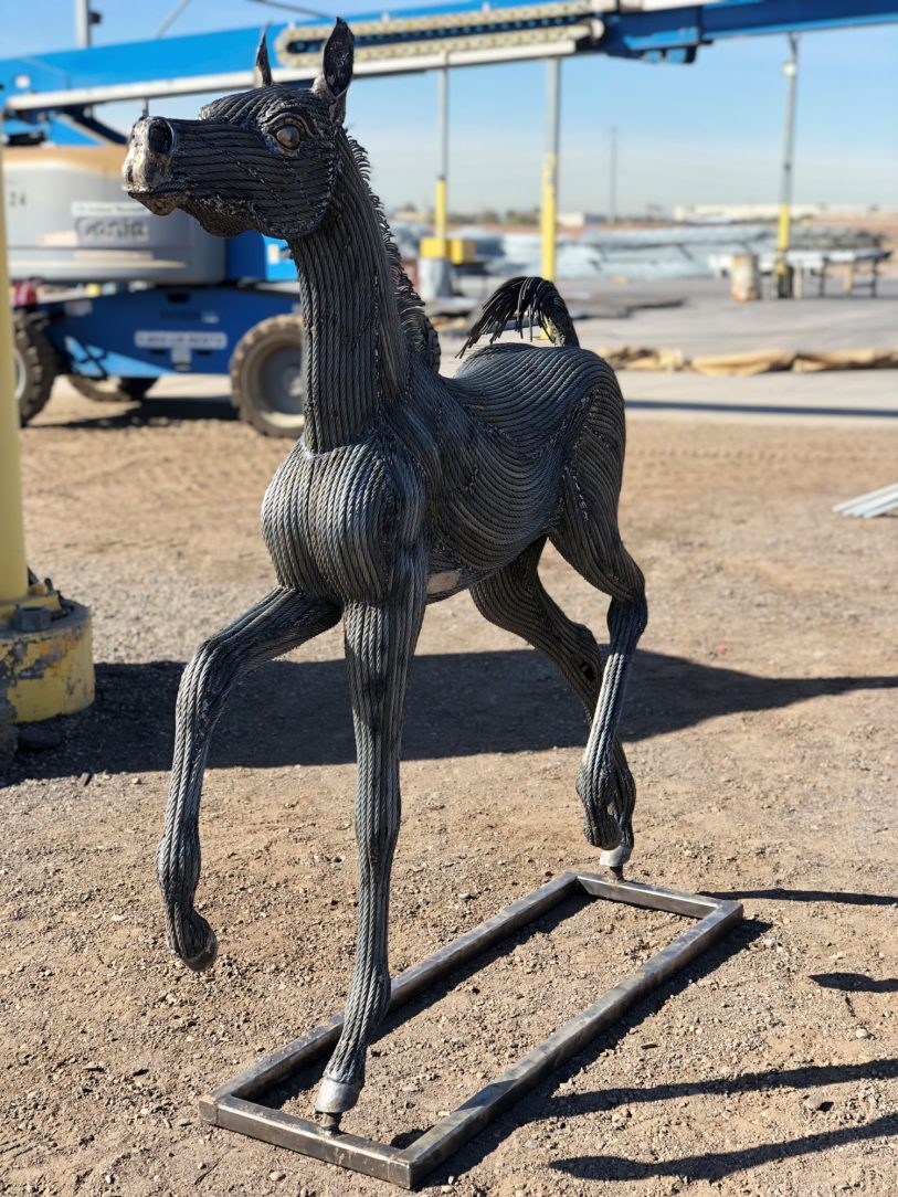 Mr. and Mrs. Ureta have been creating art on the sides of their own careers as Innovation Sculptures LLC for going on 10 years. They create their very own masterpieces from scrap metal. The horse was created by combing Mr. Ureta’s career as an Iron worker and his creative artistic talents. As an iron worker, Mr. Ureta has seen plenty of galvanized pieces so he was curious to see the finish on his newly created wire horse.