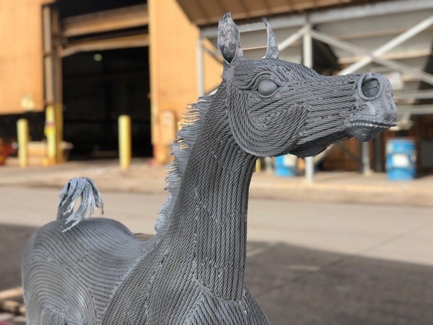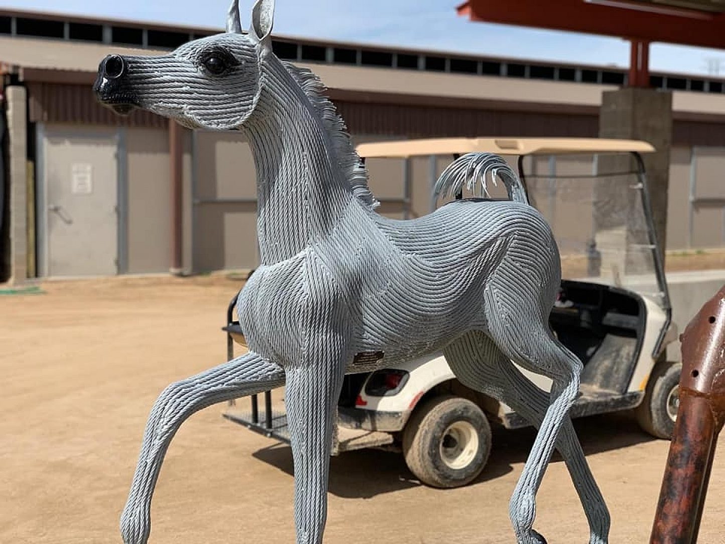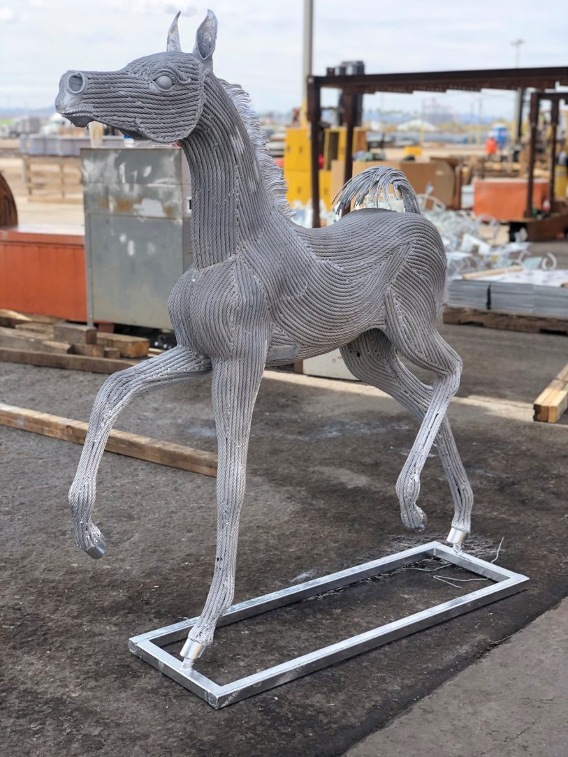 The horse was created with steel cable wire and the entire horse was galvanized.