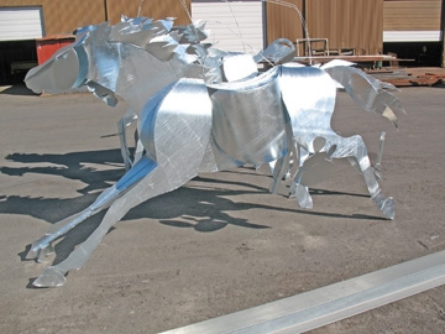 With the fragile nature of the sculpture and high possibility of warping, the stallions required special handling to ensure the end product reflected the artists vision. The 1,522 lbs. of stallion steel, including the fabricated welded body plates and hoof-like base anchors were galvanized and ready for placement in just two days.