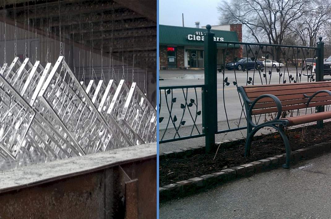 The Wall Relief Sculpture, designed and created of forged and fabricated steel, was galvanized to provide long-term corrosion protection. Once galvanized, the sculpture received a base color by the galvanizer and the artist polychromed the sculpture with galvanizer supplied compatible paints.