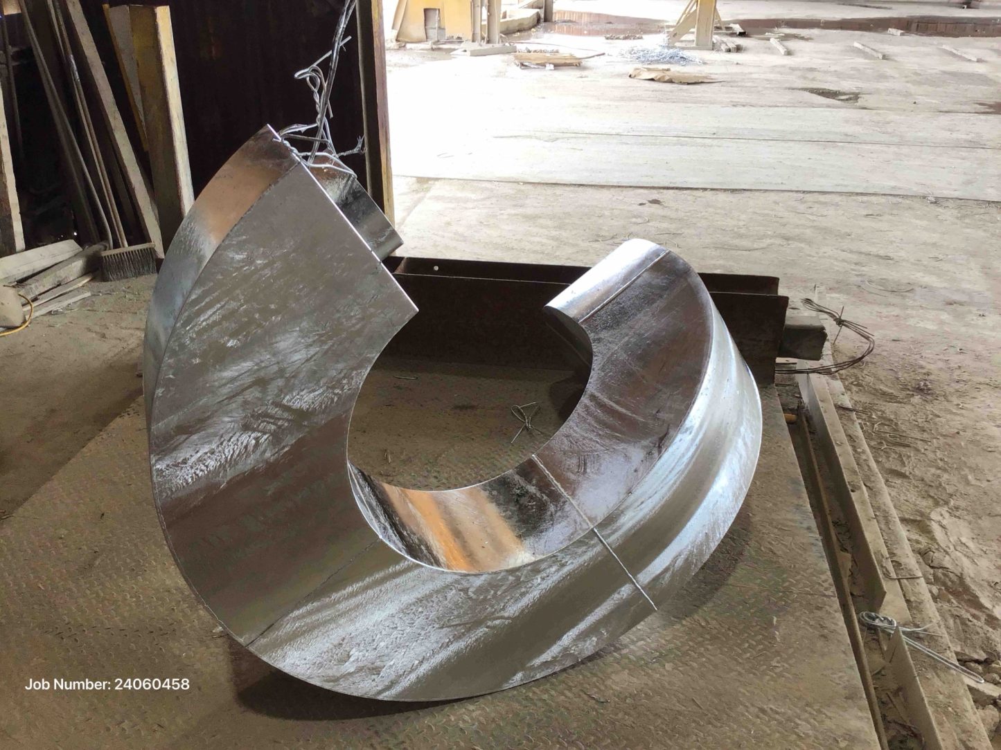 The unconventional geometry of the inflated steel introduced unique galvanizing challenges. Powder coating was initially considered, but the forms did not accept it well. Ultimately, the sculpture required extensive surface preparation, including blasting and manual finishing work completed in Lincoln, Nebraska. During the HDG process, the piece was galvanized multiple times to achieve the precise finish desired by both the artist and city. Through these iterations, Badham gained a new understanding of how zinc flows over the complex surfaces and how certain inflated shapes respond in the kettle. The galvanizer worked closely with the artist to ensure full coverage, interior protection, and uniform appearance across all structural elements.