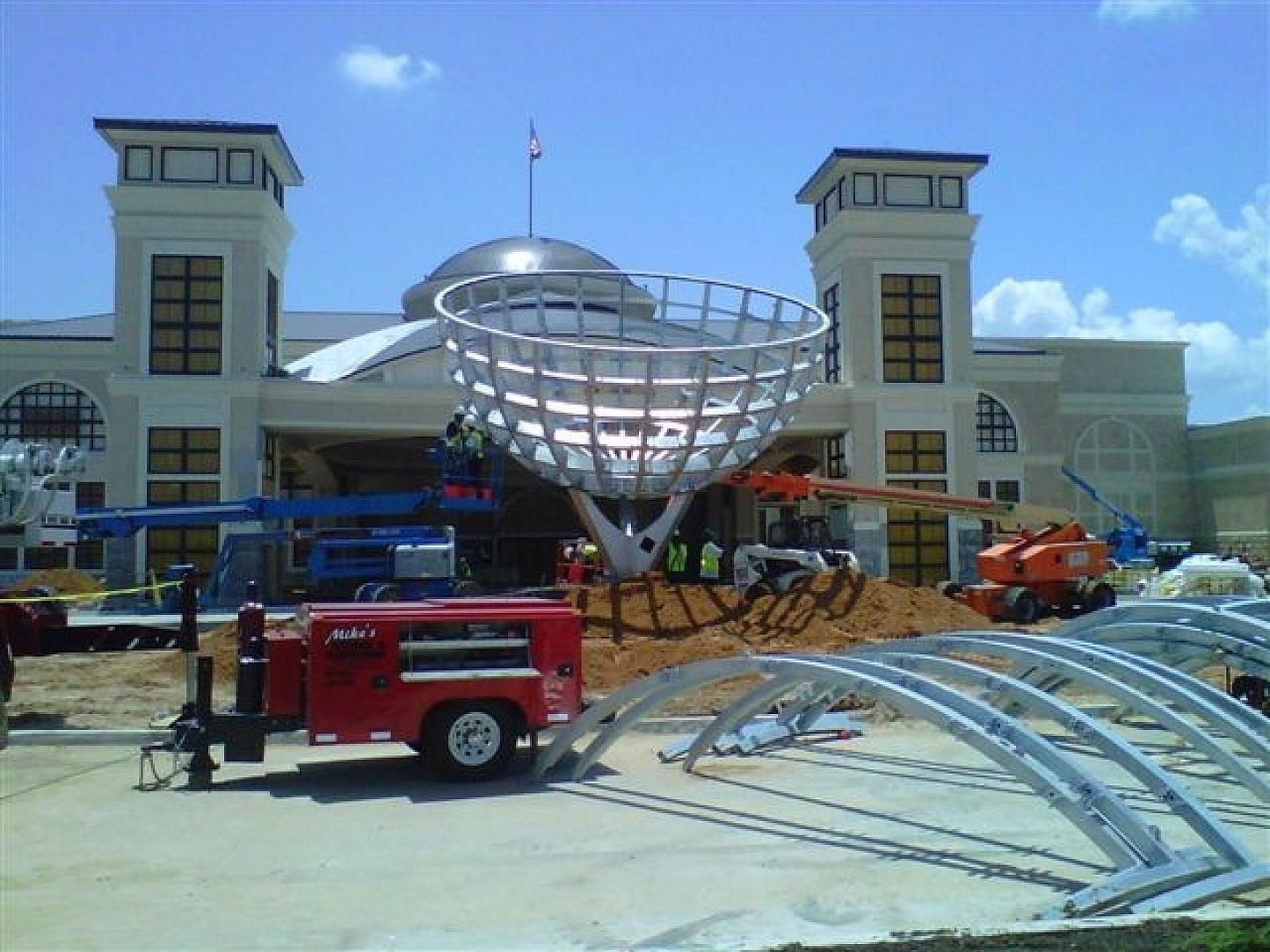 This scaled-down replica of the 1964 New York World's Fair Globe was initially designed to be constructed out of stainless steel, but financial concerns shuttered that idea. Other considerations such as aluminum and paint quickly gave way to hot-dip galvanizing because of it's ability to provide corrosion protection inside and out for these modular sections. The potentially wet Oklahoma weather made the galvanized coating an important element in protecting the "globe."