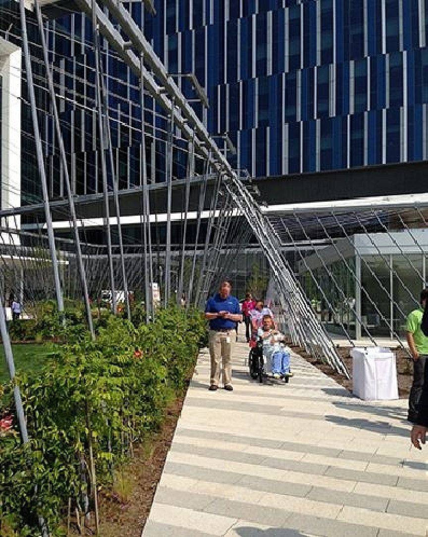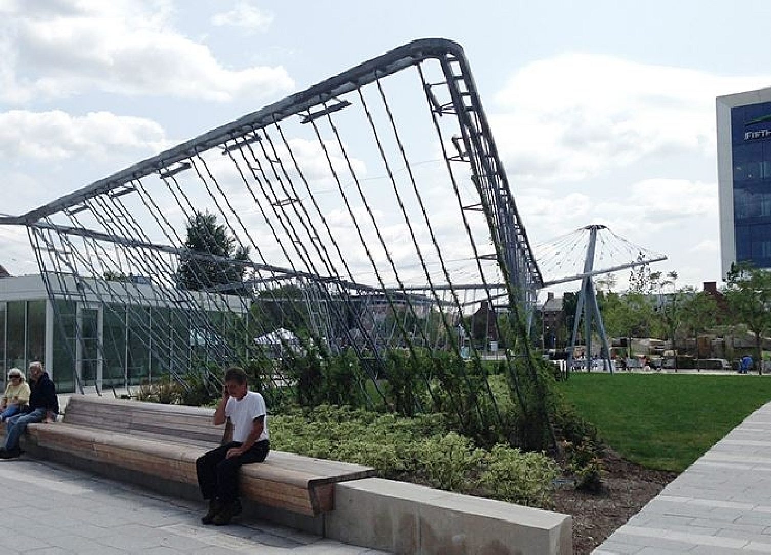 This innovative trellis structure supports seasonal vegetation and encourages year round activity, an important part of the overall design.