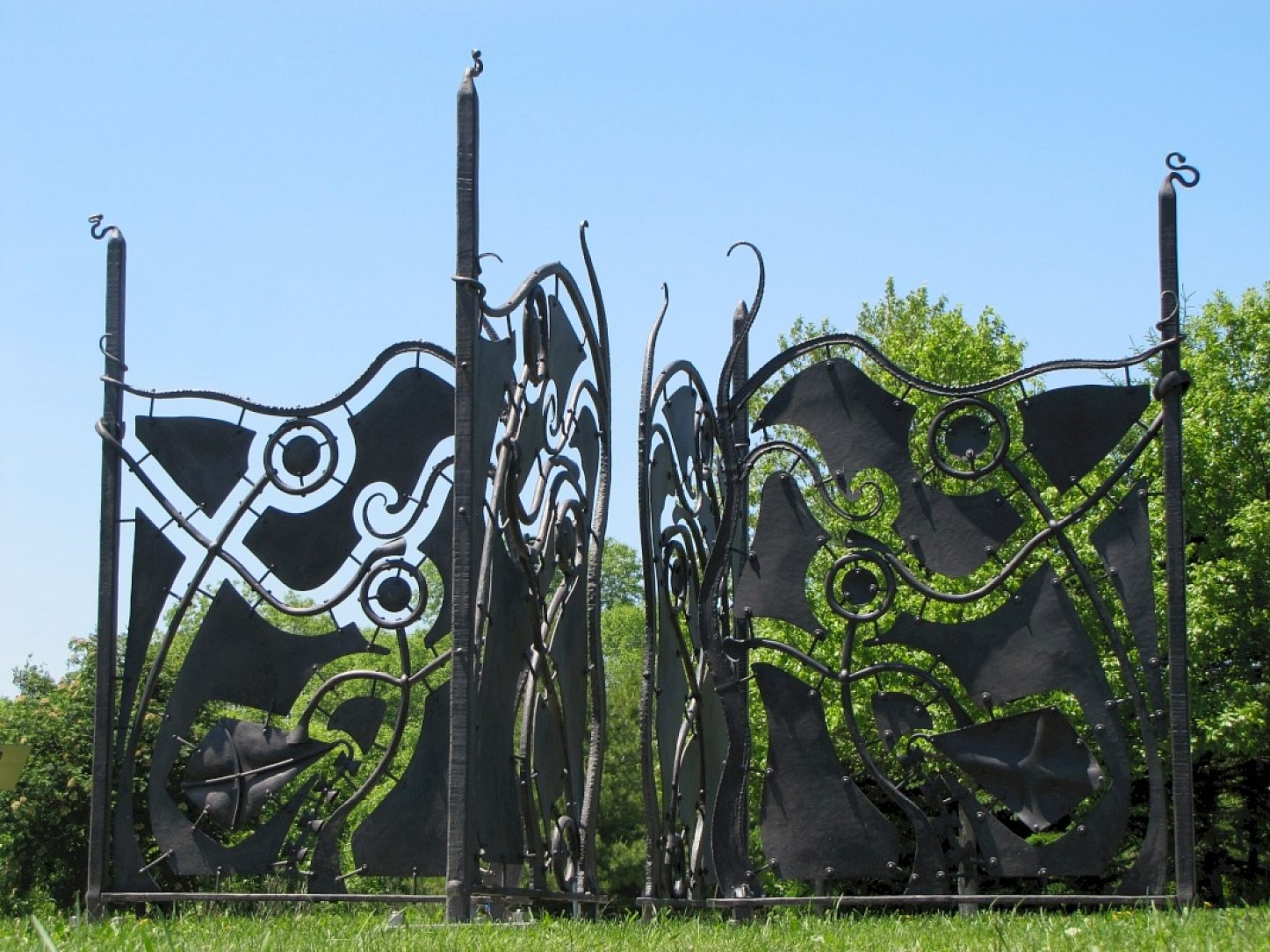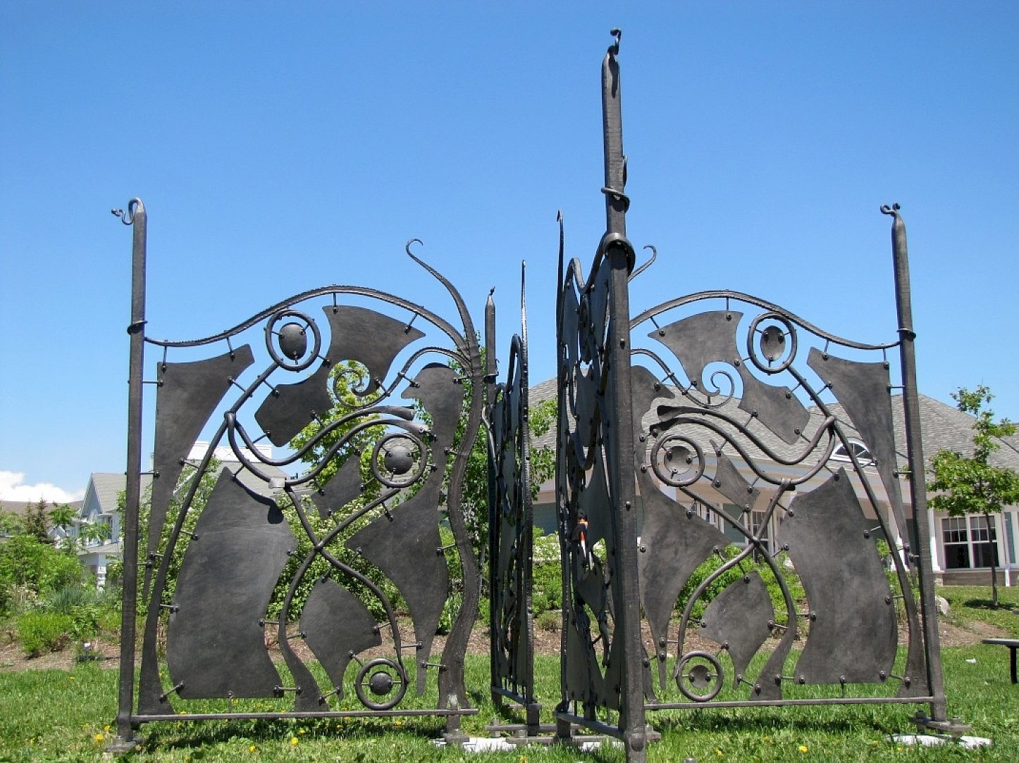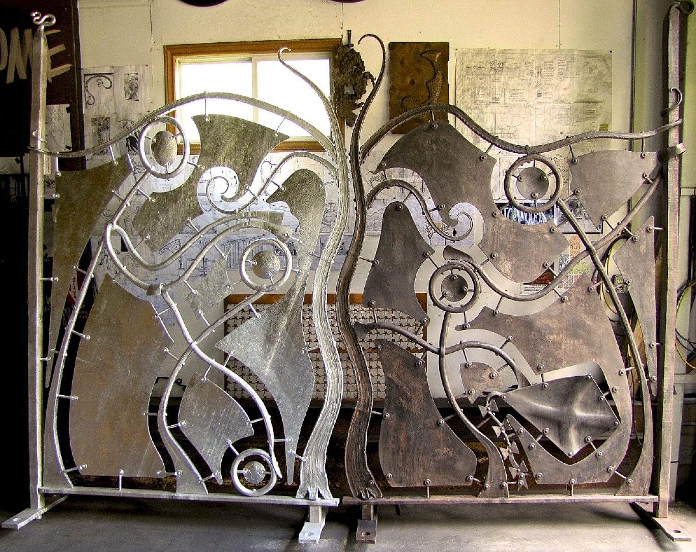 An important outcome of the galvanizing process in this case was the effect of molten zinc solidifying the panels that were put together using traditional forging techniques. To give rigidity to the overall structure this way was a bonus.