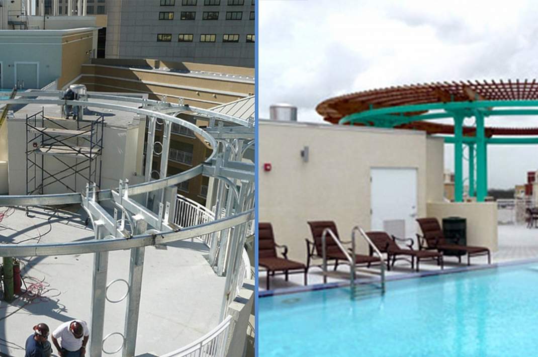 Reaching high into the Vancouver sky, the windowed walls of the Woodwards Building W Tower are laced with columns of intricately etched decorative panels depicting tangled branches. These panels take advantage of the increased corrosion protection of a duplex system. For projects that require a particular color scheme, duplexing is a good way to get the corrosion-resistant protection of galvanizing, while allowing a structure to incorporate any color desired.